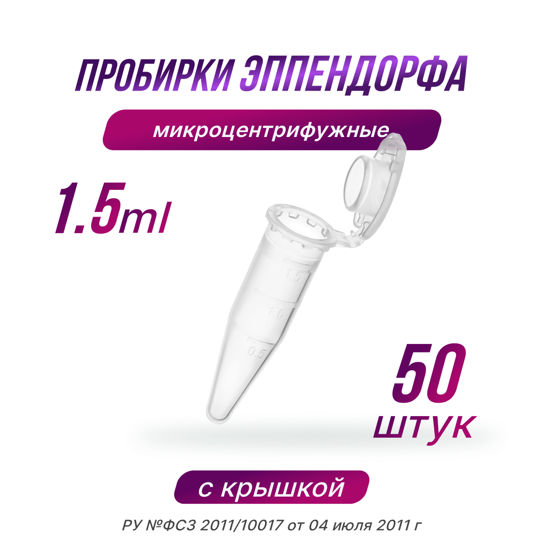 10 цен на Пробирки Эппенидорфа 1,5мл, с застежкой и мерной шкалой, 50 шт.