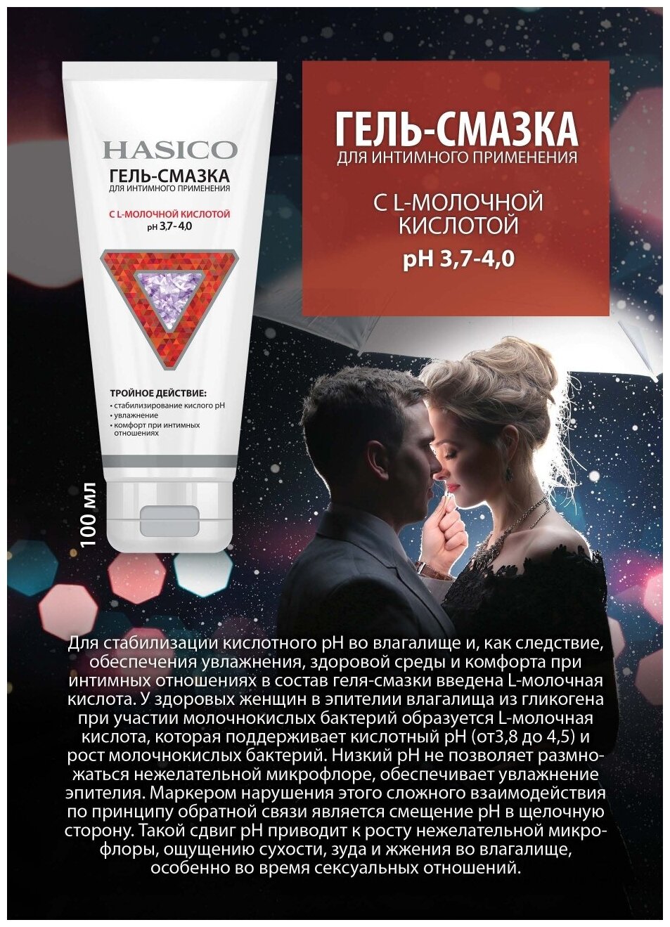 Хасико гель-смазка с L-молочной кислотой РН 3,7-4,0 100 мл 1 шт информация: