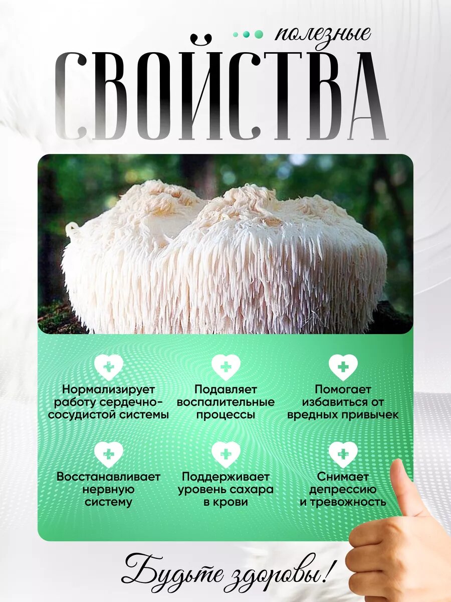 Ежовик гребенчатый, плодовые тела lions mane + мицелий, капсулы 60 шт. информация: