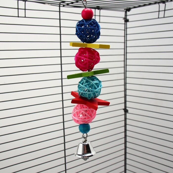 Отзывы на Игрушка для птиц, мячики такрау с колокольчиком и бусинами микс цветов