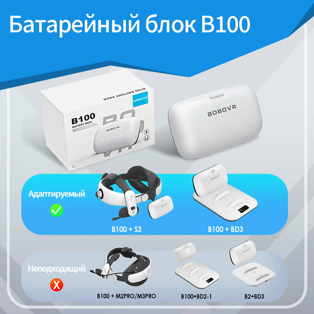 BOBOVR B100 Сменный аккумулятор для Oculus Quest 3 и S3 Pro емкостью 10000 мАч информация: