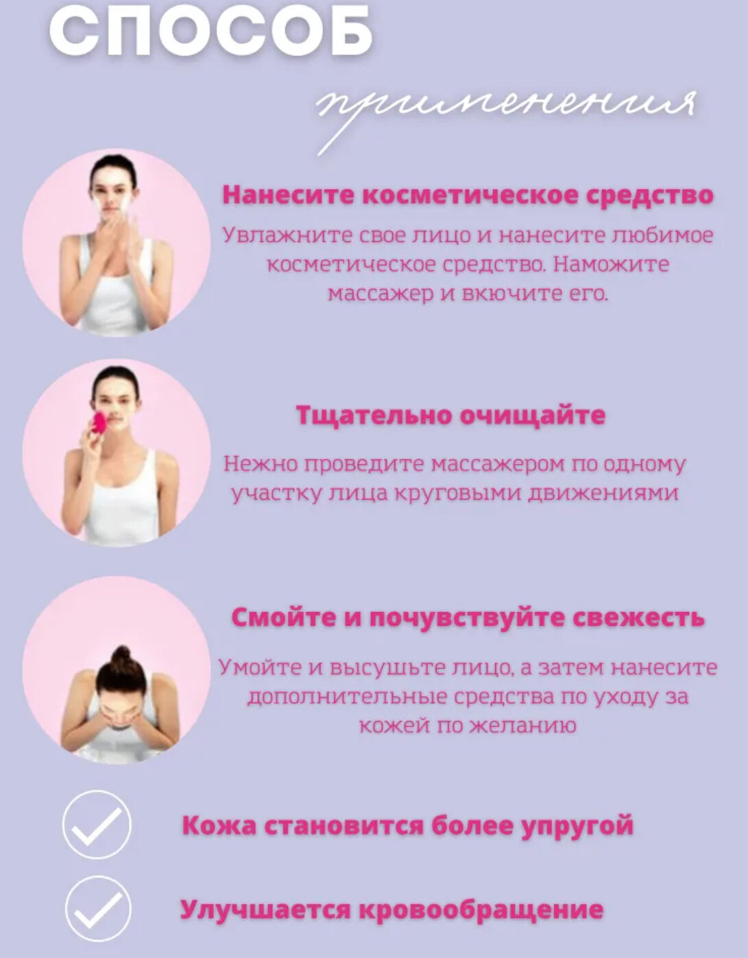 Щетка для очищения лица / спонж для умывания / ультразвуковая чистка / массажер электрический