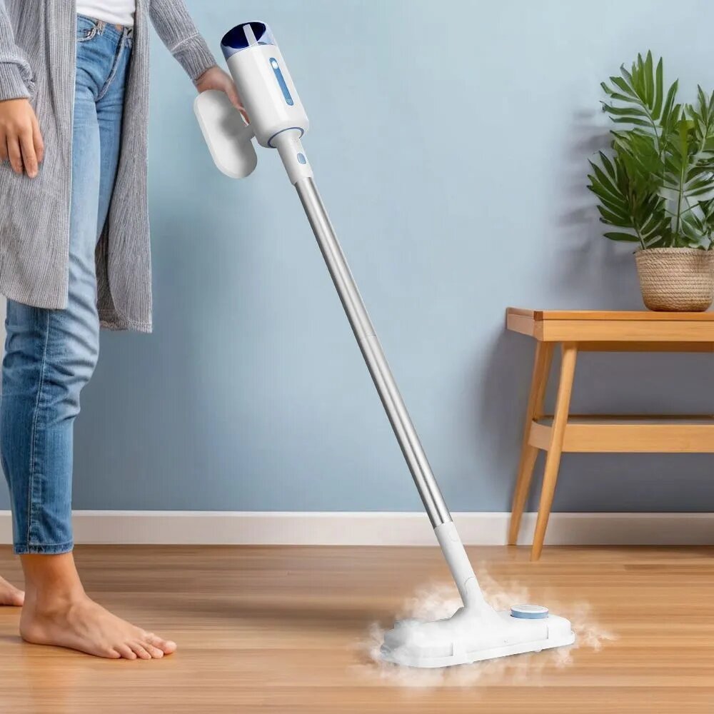 Паровая швабра Windigo WSM-01, 1300 Вт, 350 мл, время нагрева 25 сек, шнур 4 м, бело-голубой