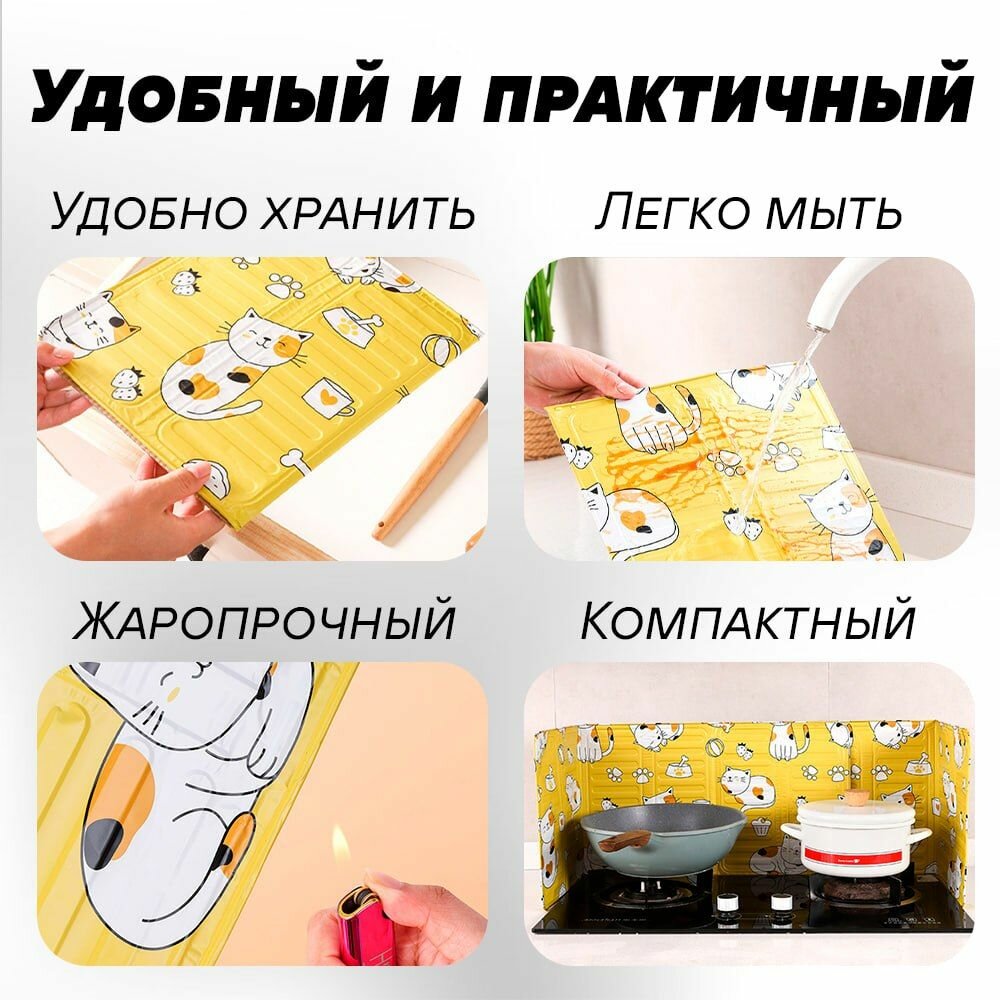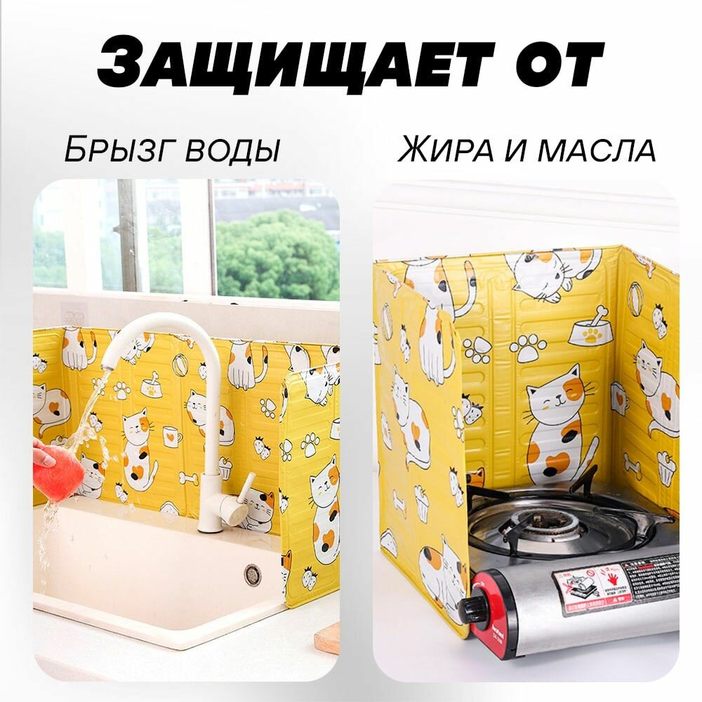 Защитный экран для кухни от брызг масла и жира / Фольга защитная для плиты при жарке / Желтый информация: