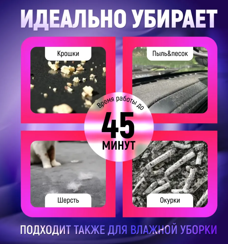 Отзывы на Автомобильный пылесос ручной беспроводной черный /Высокомощный автопылесос портативный