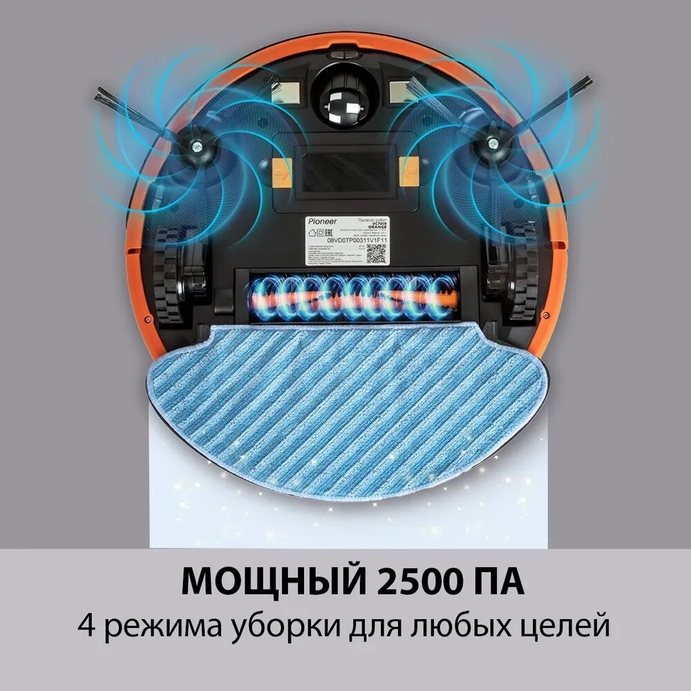 Робот пылесос с влажной и сухой уборкой Pioneer VC705R orange, с Алисой, управление Smart life информация:
