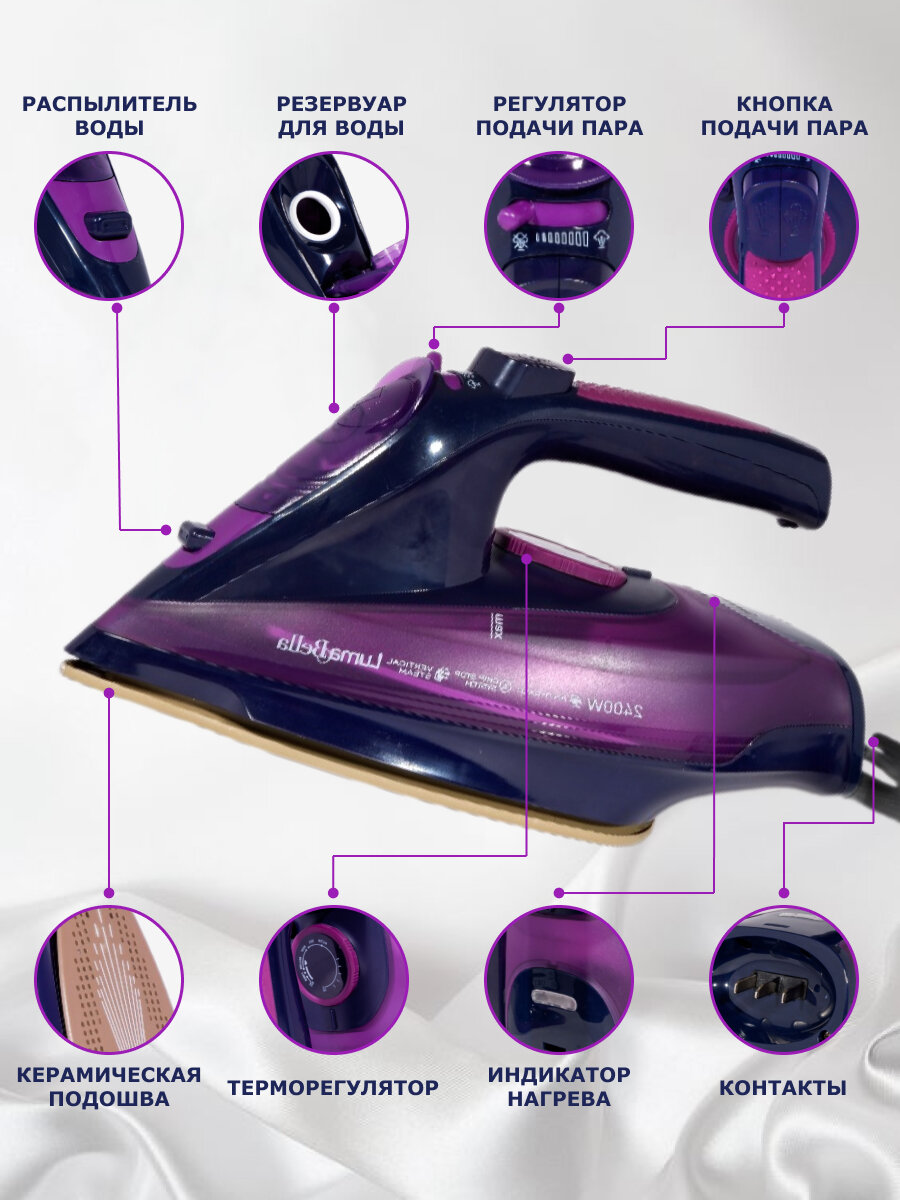 | Дополнительные функции | паровой удар / постоянная подача пара / регулировка подачи пара / система самоочистки / сухая глажка / функция разбрызгивания |
