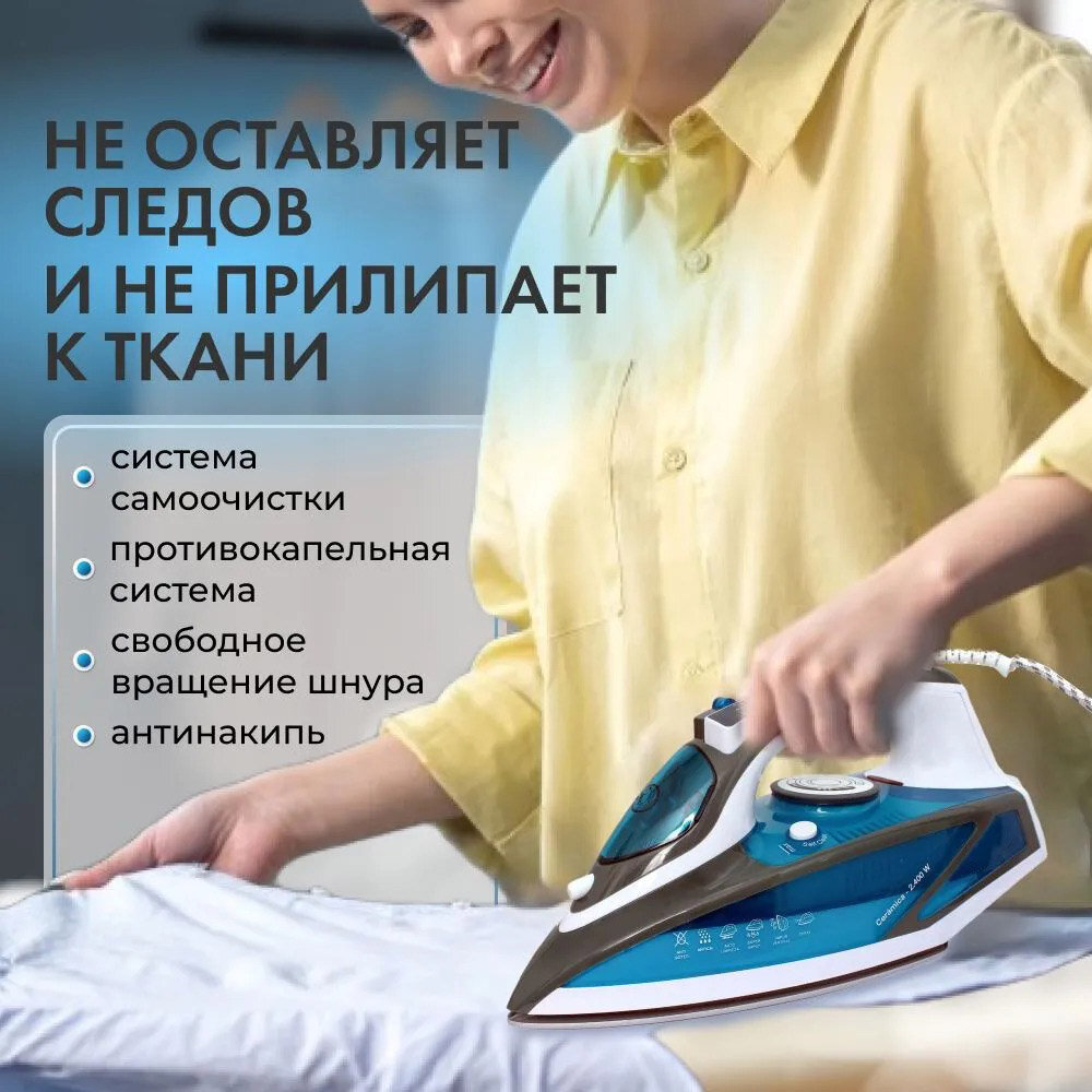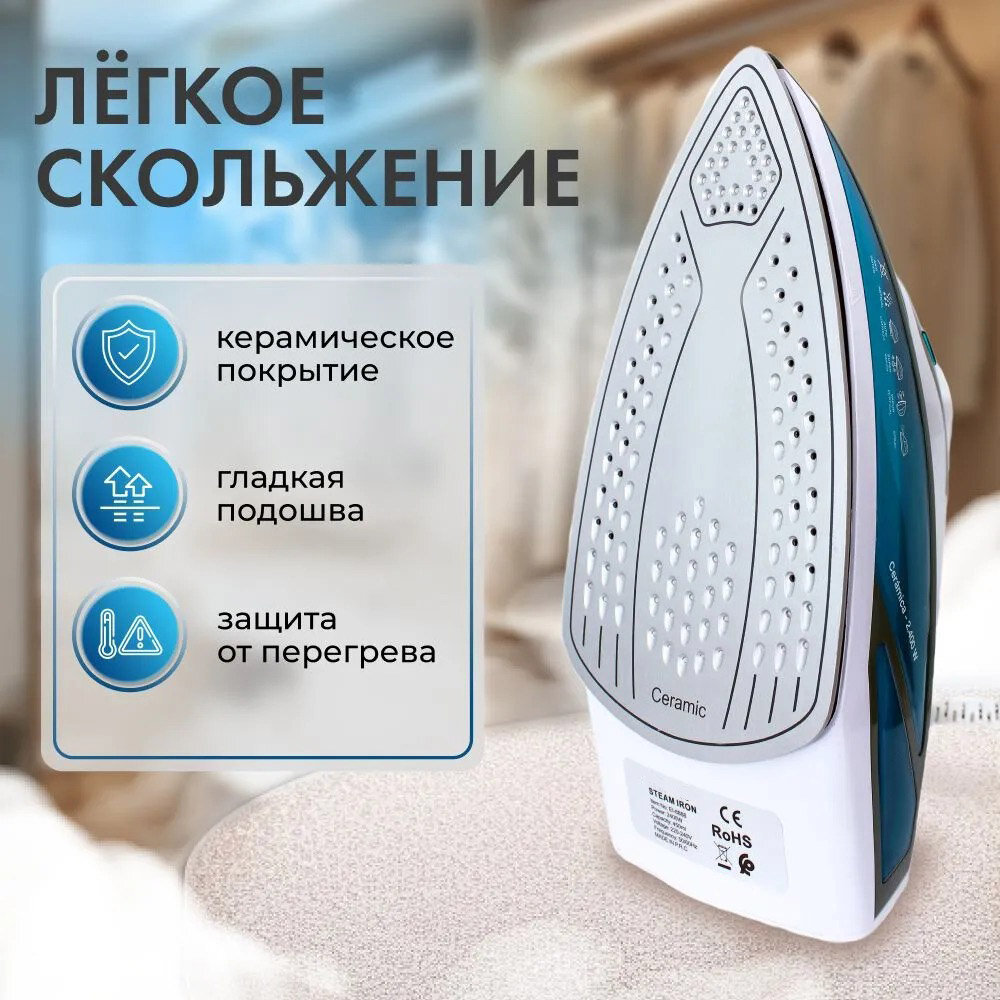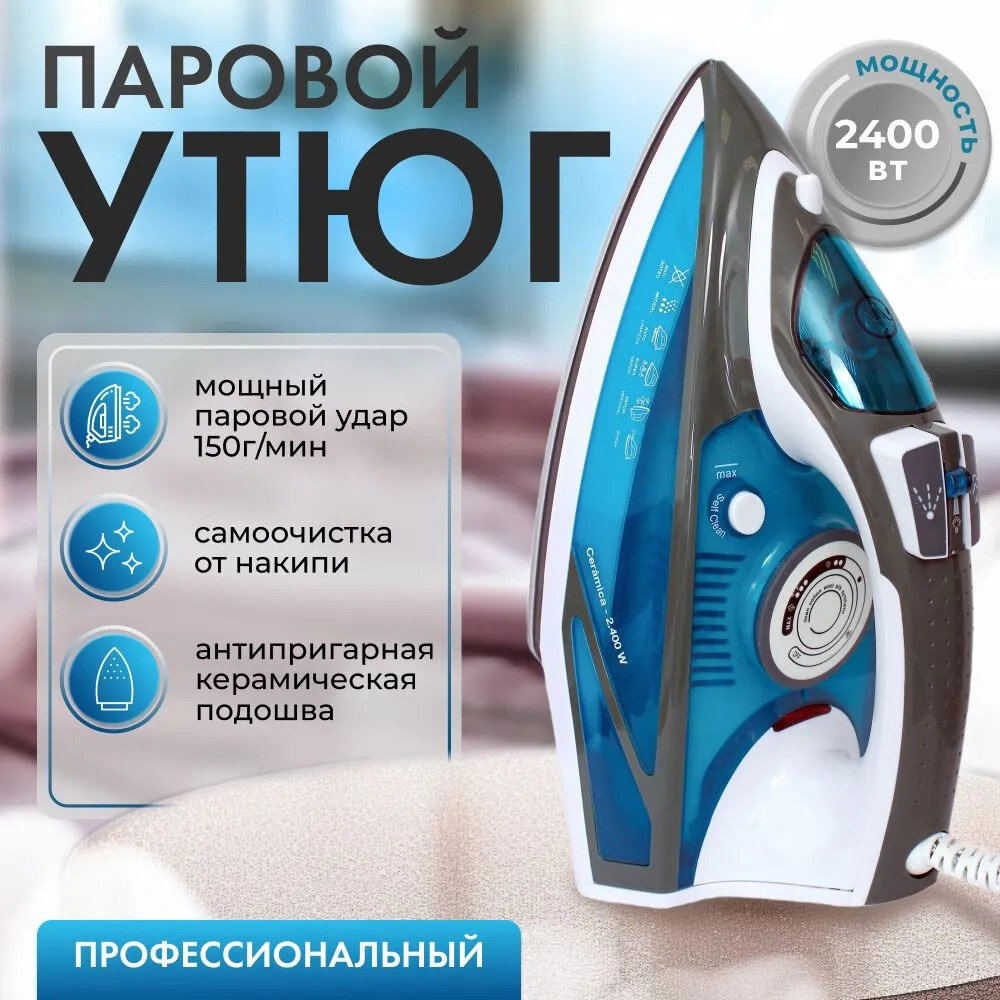 Домашний утюг паровой, с функцией вертикальной глажки, паровой удар, антипригарное покрытие, система самоочистки, 2600ВТ