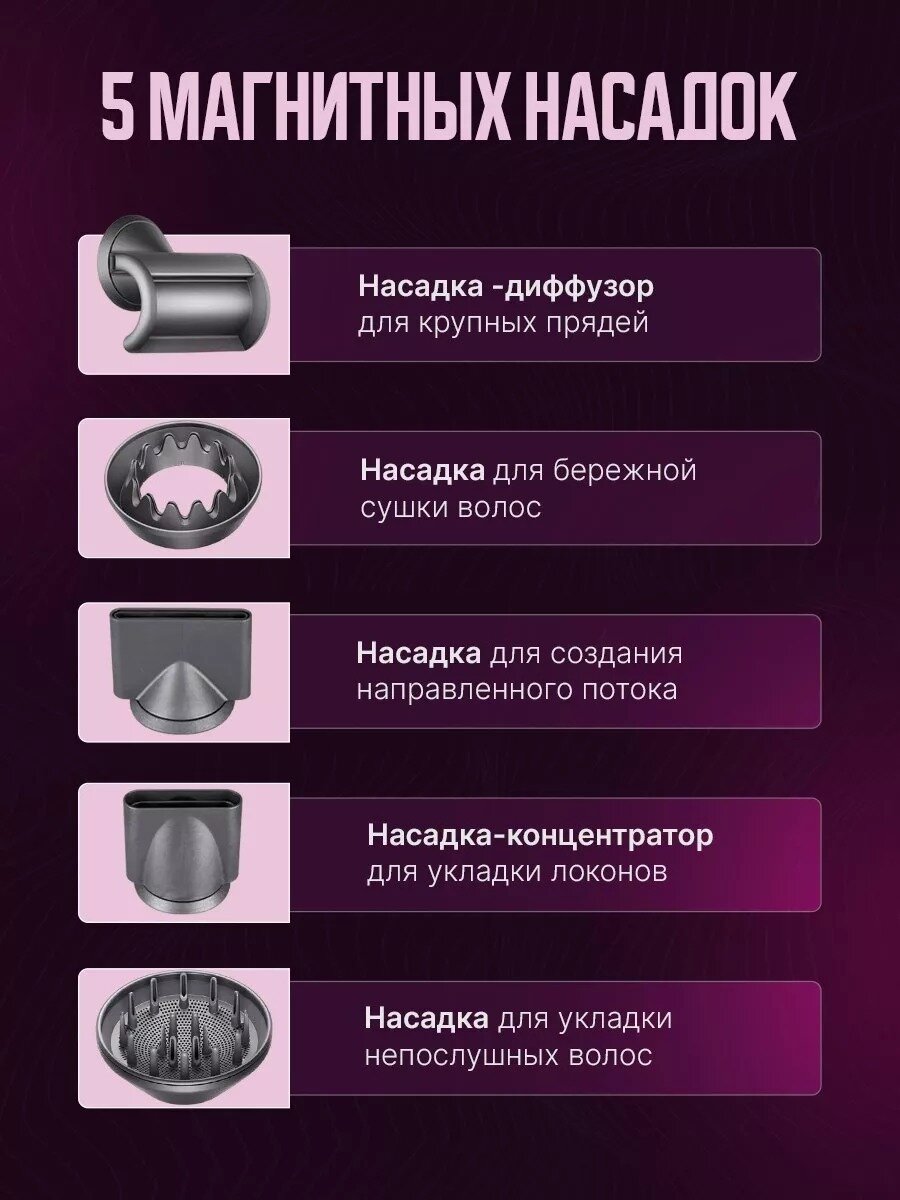 Фен для волос Super Hair Dryer профессиональный / Стайлер для укладки / Набор для укладки волос, 5 насадок