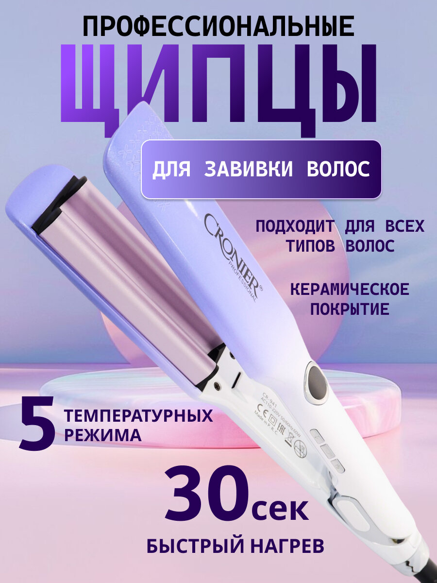Плойка волнистая для завивки волос, Стайлер для укладки щипцы гофре, профессиональная волновая плойка гофре. керамическое покрытие информация: