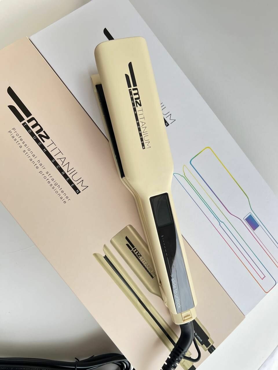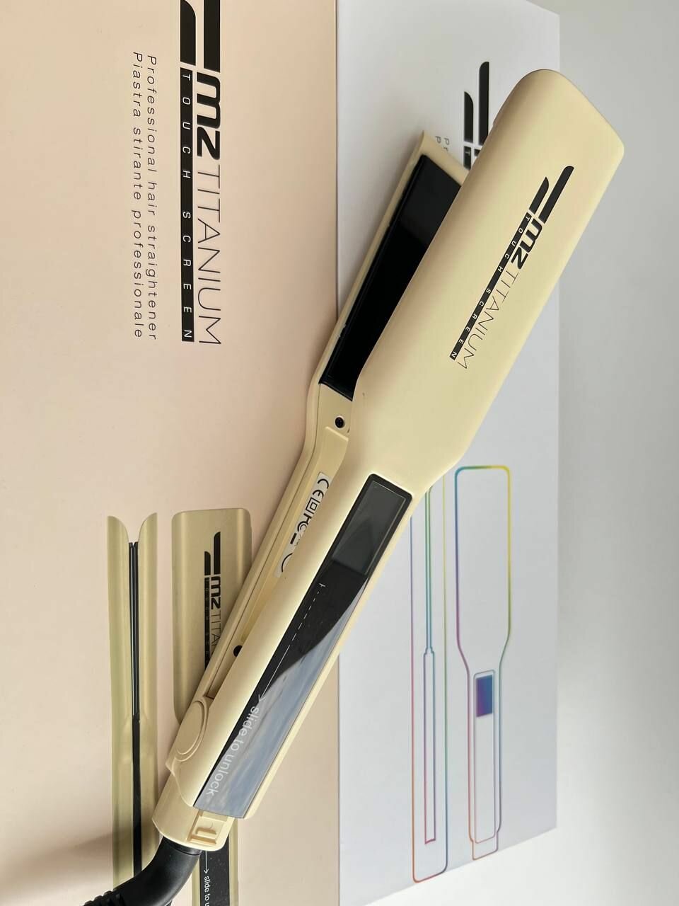 Утюжок MZ Titanium титановые пластины профессиональный молочный, черные пластины, матовый информация: