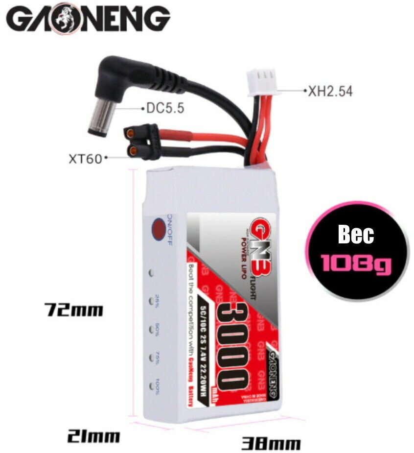 Отзывы на Аккумулятор Gaoneng GNB 3000 мАч 2S 7,4 В 5C литий-полимерный XT60 разъем для очков FPV Скайзон, Фатшарк, Dji googles