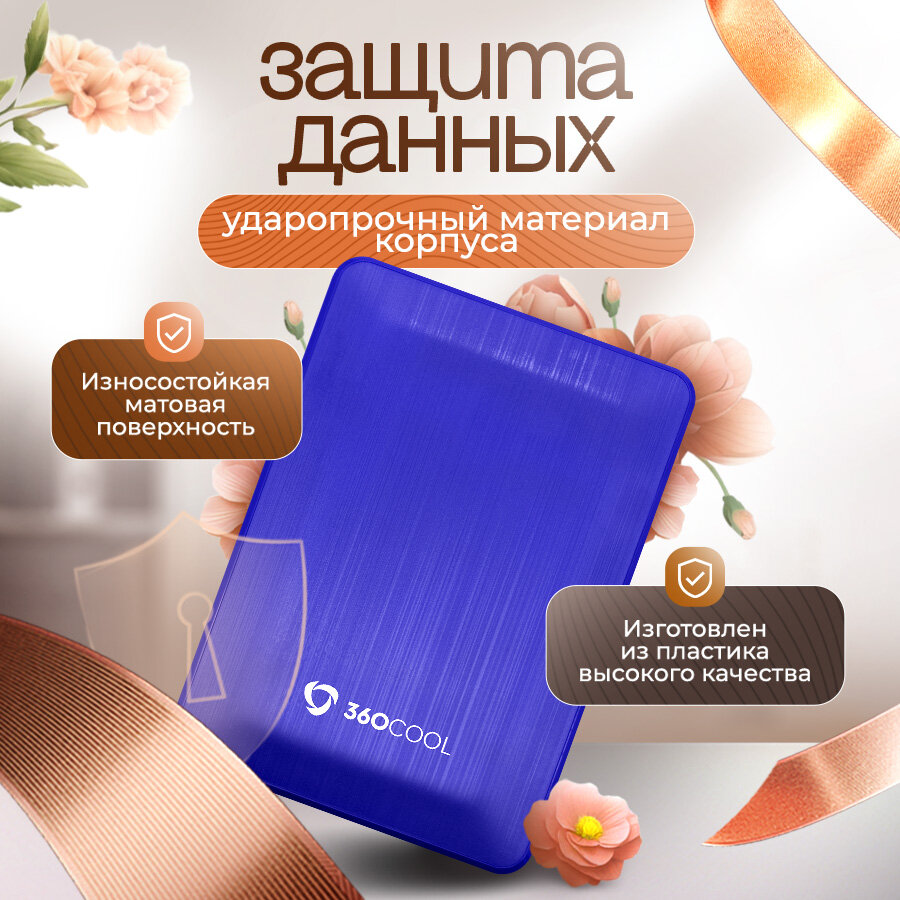 Внешний жесткий диск 1TB, переносной HDD накопитель для консоли PS4/5, XBOX X/S, для ПК/Ноутбука, 360COOL, синий информация: