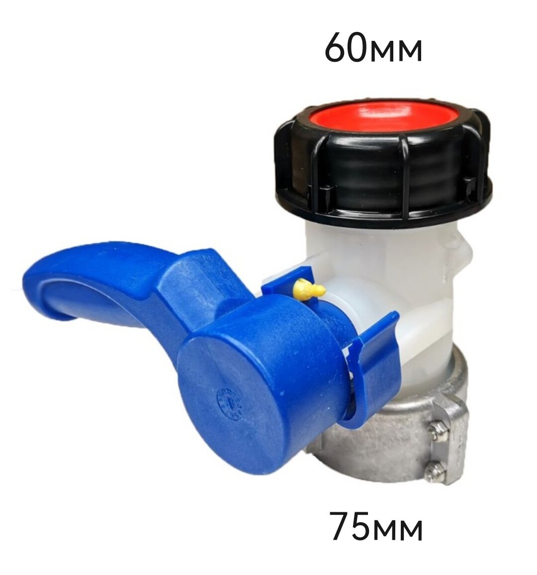Кран плунжерный для Еврокуба DN50 (75мм), вход S75x6 (2") 75мм крупная резьба шаг 6мм , выход 60(62мм) крупная резьба шаг 6мм информация: