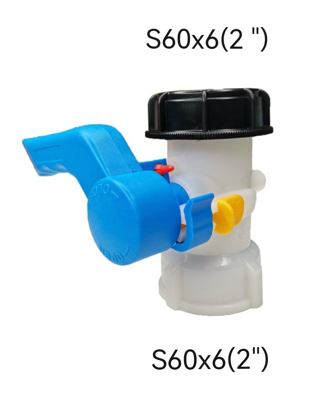 Кран "Баттерфляй" для Еврокуба DN50, 60мм, вход S60x6 (2"), 60мм крупная резьба шаг 6мм, выход 60мм резьба шаг 6мм. информация: