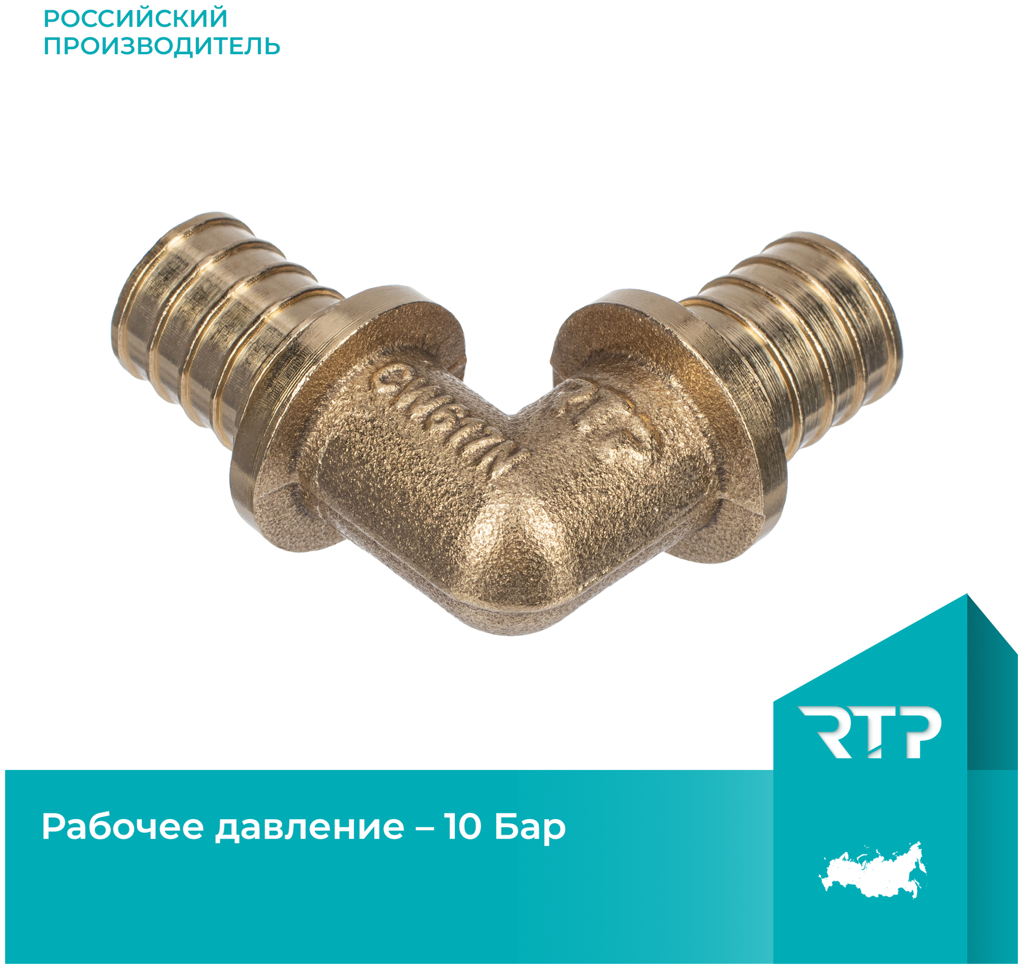 Уголок резьбовой РосТурПласт латунный с креплением и внутренней резьбой 1/2", 16 мм