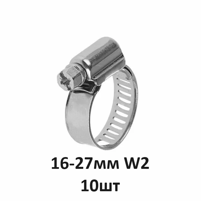 10шт - Хомут 16-27мм / Хомут червячный из нержавеющей стали W2 / Хомут обжимной информация: