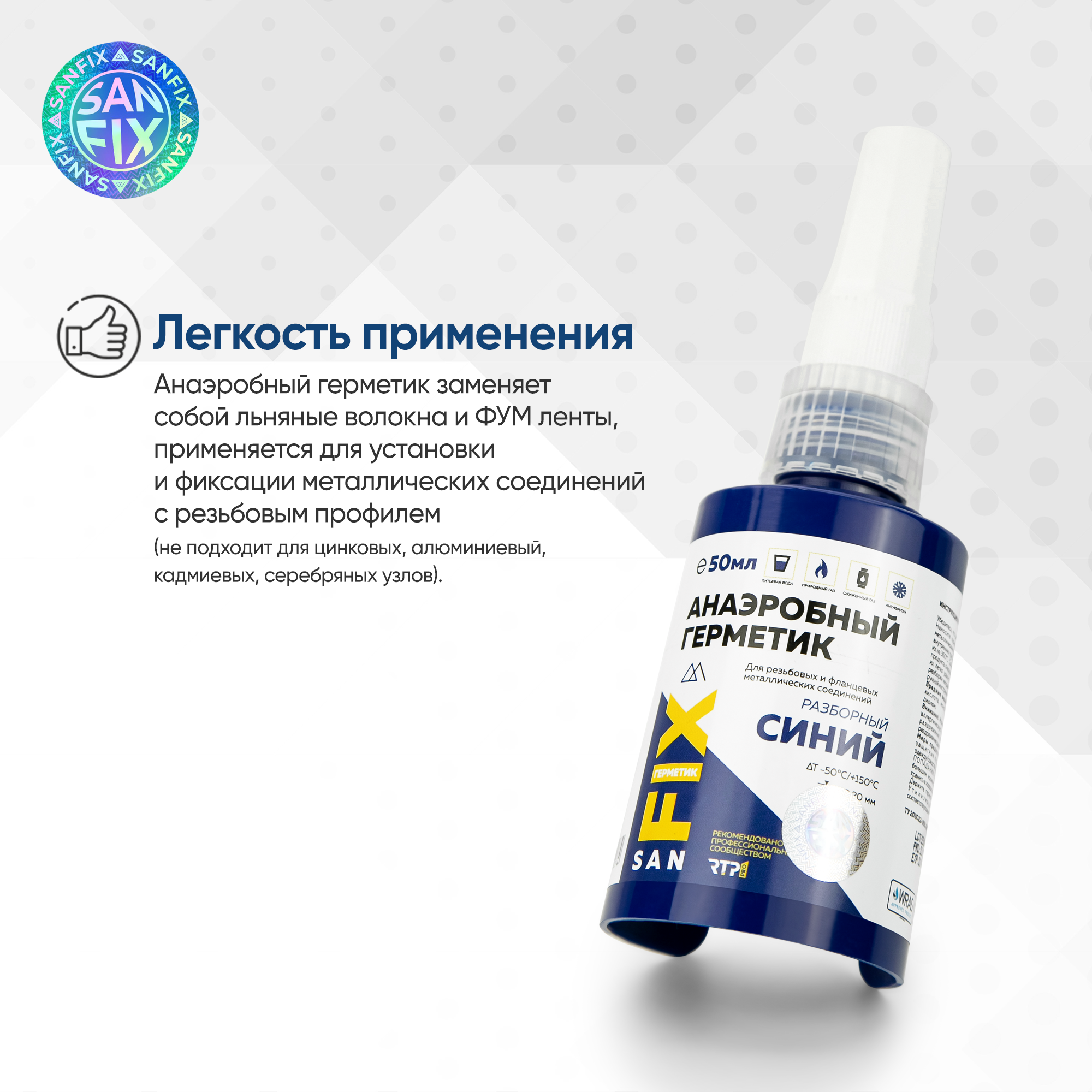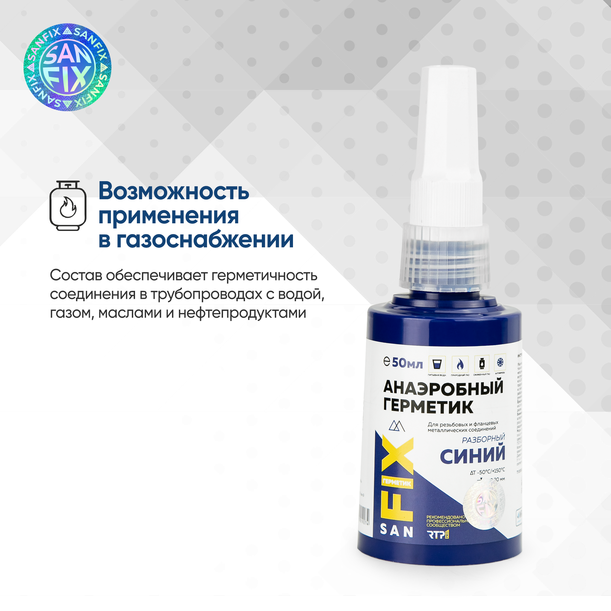 Герметик анаэробный 50 мл, разборный, средней прочности, средней вязкости,гармошка, синий, Sanfix, 40749 информация: