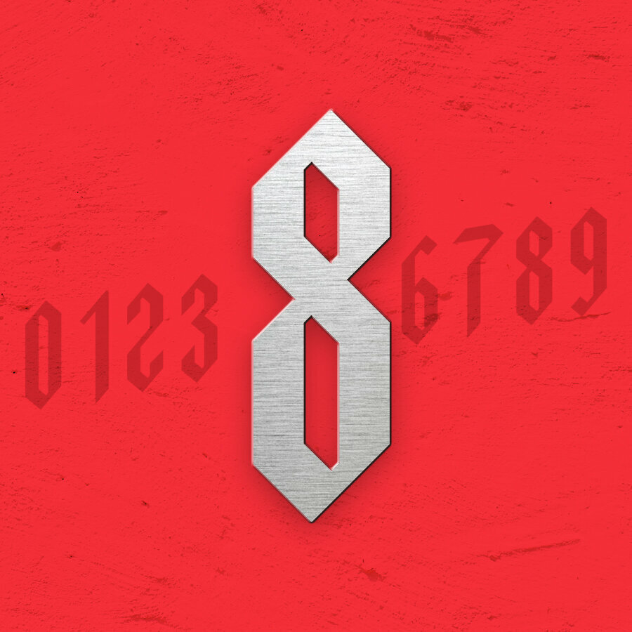 Металлическая хромированная цифра 8 в готическом стиле на входную дверь квартиры или офиса