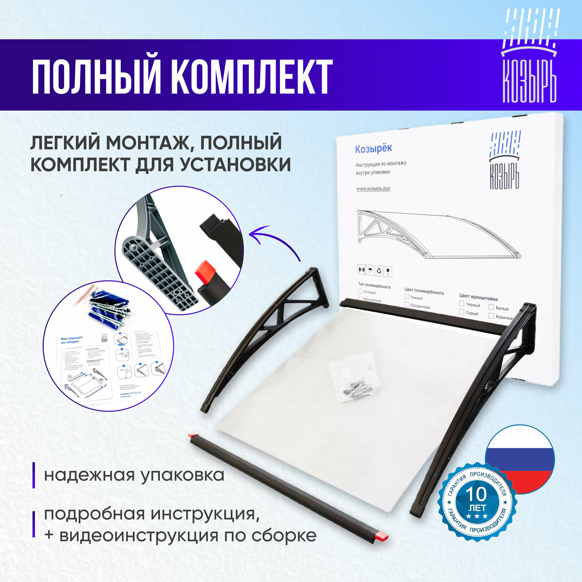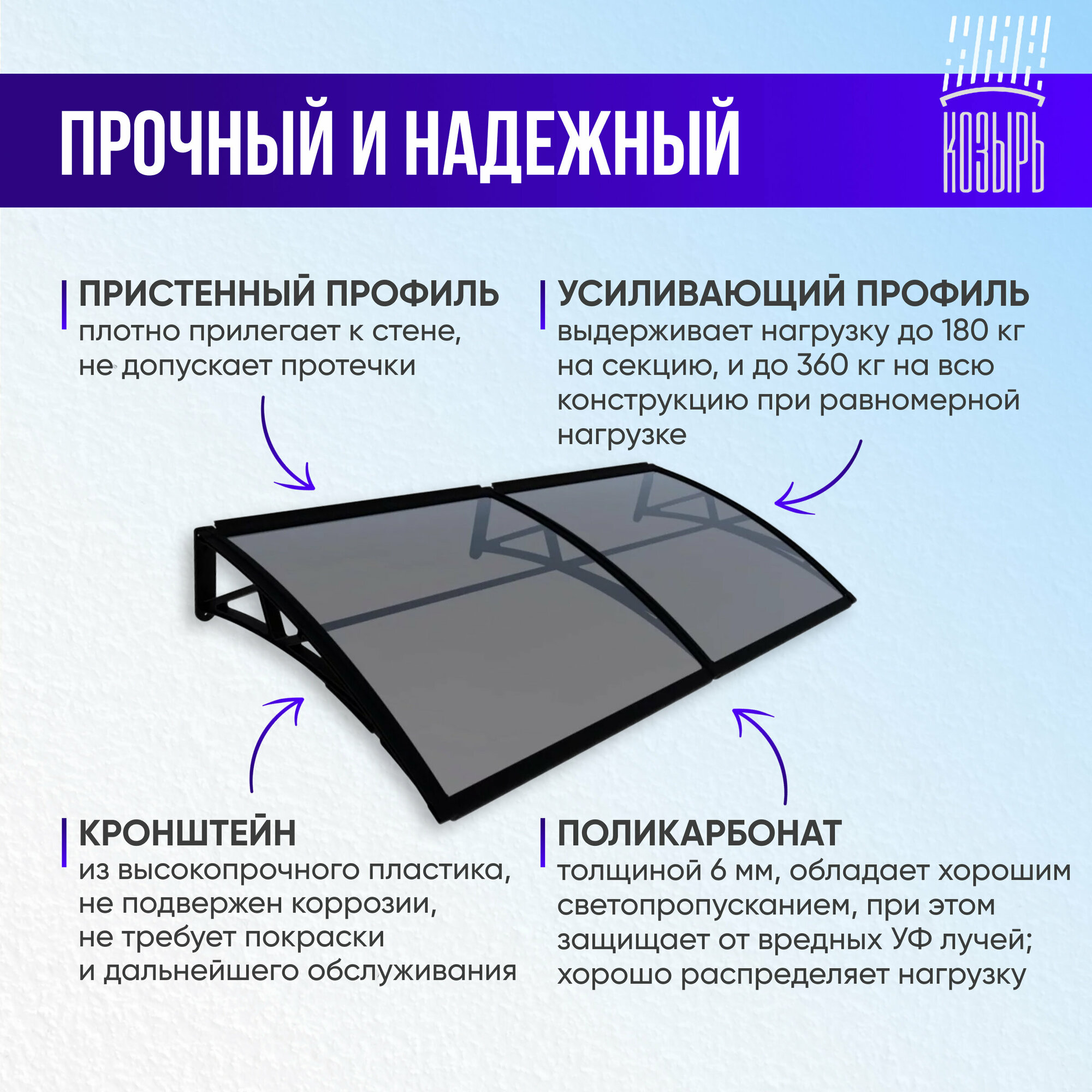 Отзывы на Защитный универсальный козырек усиленный профиль, двойной, коричневый, ПК сотовый темный 6 мм