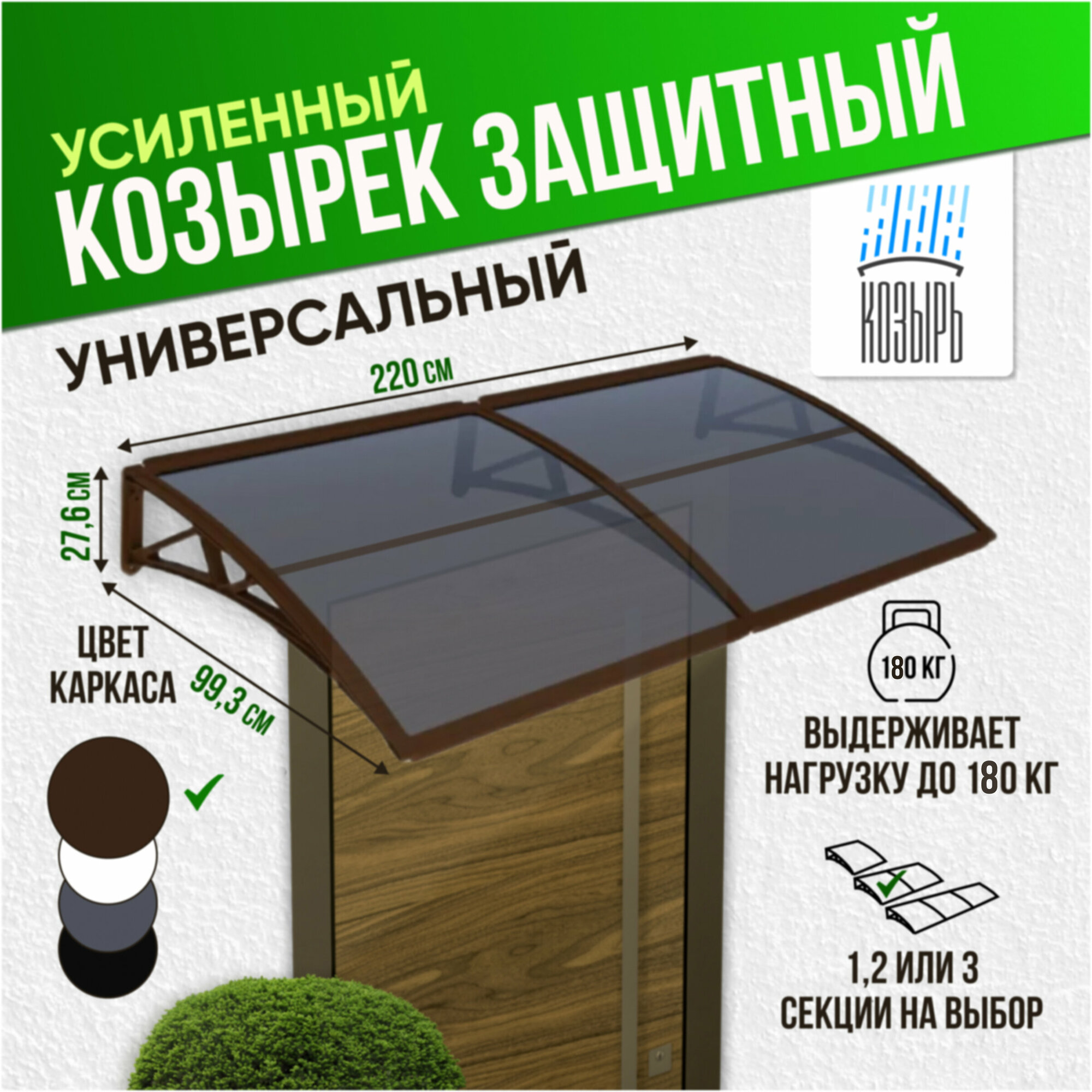 Защитный универсальный козырек усиленный профиль, двойной, коричневый, ПК сотовый темный 6 мм информация: