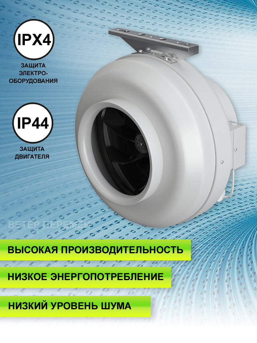 Вентилятор канальный круглый ВКК-160 viking в металлическом корпусе, 220В, 450 м3/час, 400 Па, 114 Вт, для круглых воздуховодов диаметром 160 мм, IP 44