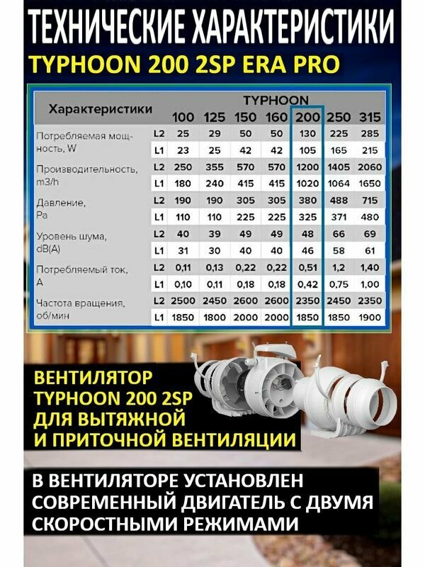 Вентилятор канальный TYPHOON 200 2SP коммерческий информация: