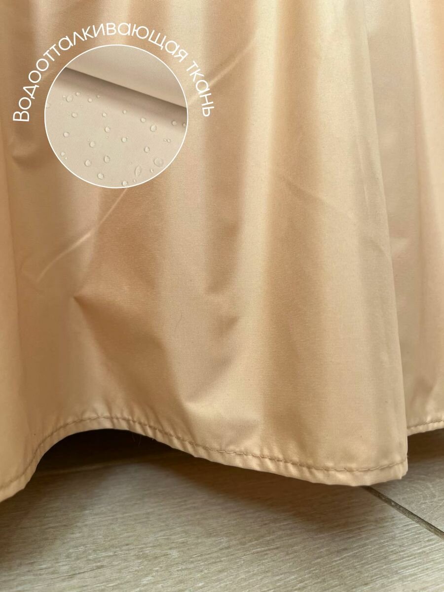| Дополнительная информация | выполнен из водоотталкивающей ткани (полиэстер 100%), легко крепится под ванну на липкую ленту и отстегиватся при необходимости |