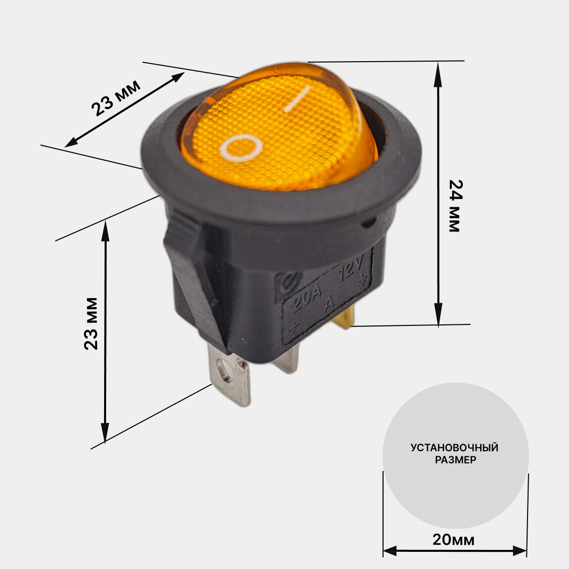 Выключатель клавишный круглый 12V 20А (3с) ON-OFF желтый с подсветкой (комплект с клеммами и термоусадкой) информация: