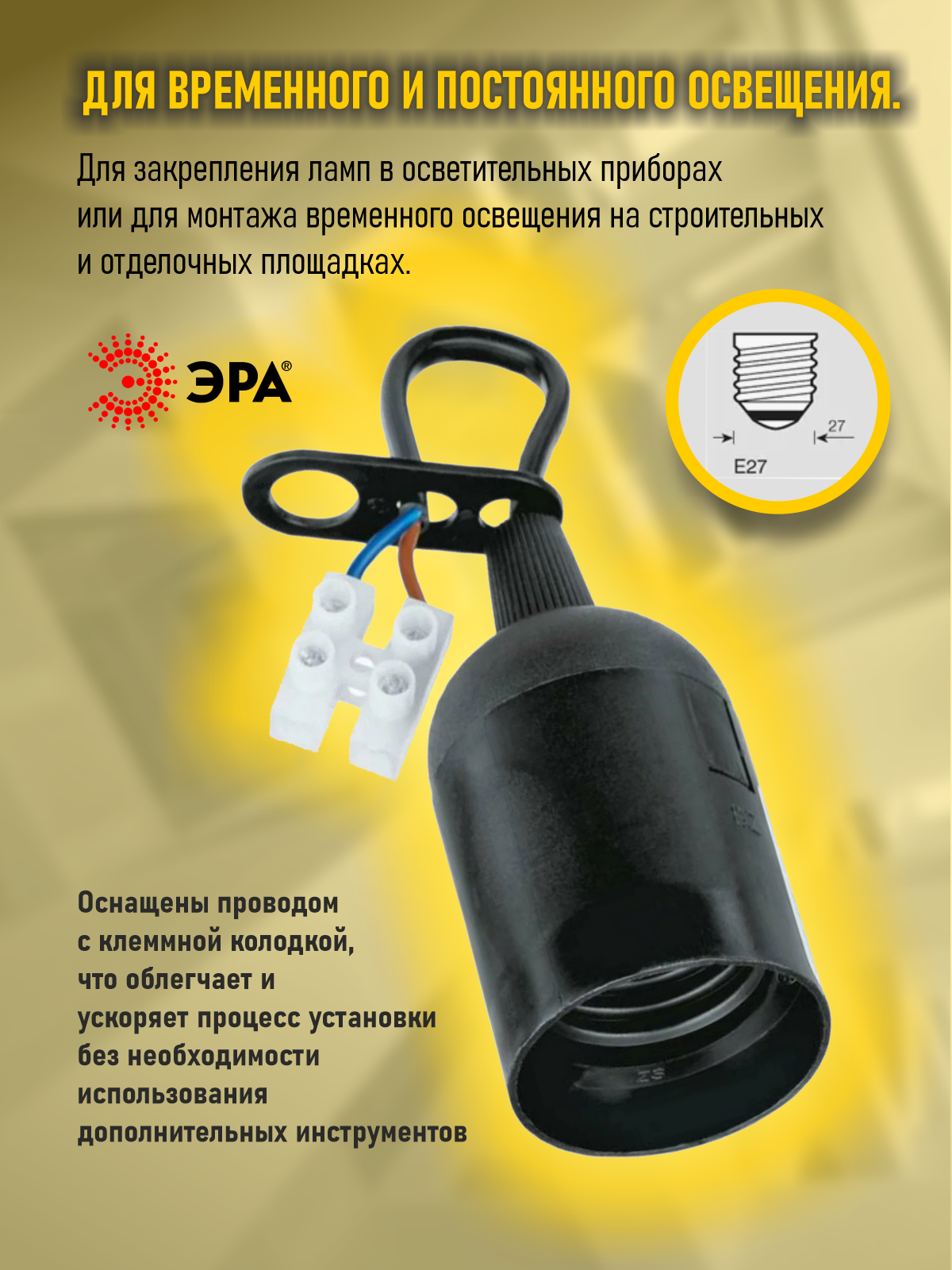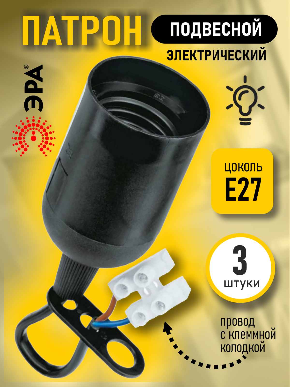 Отзывы на Патрон электрический подвесной, цоколь Е27, провод с клеммной колодкой. Черный. 3 шт.