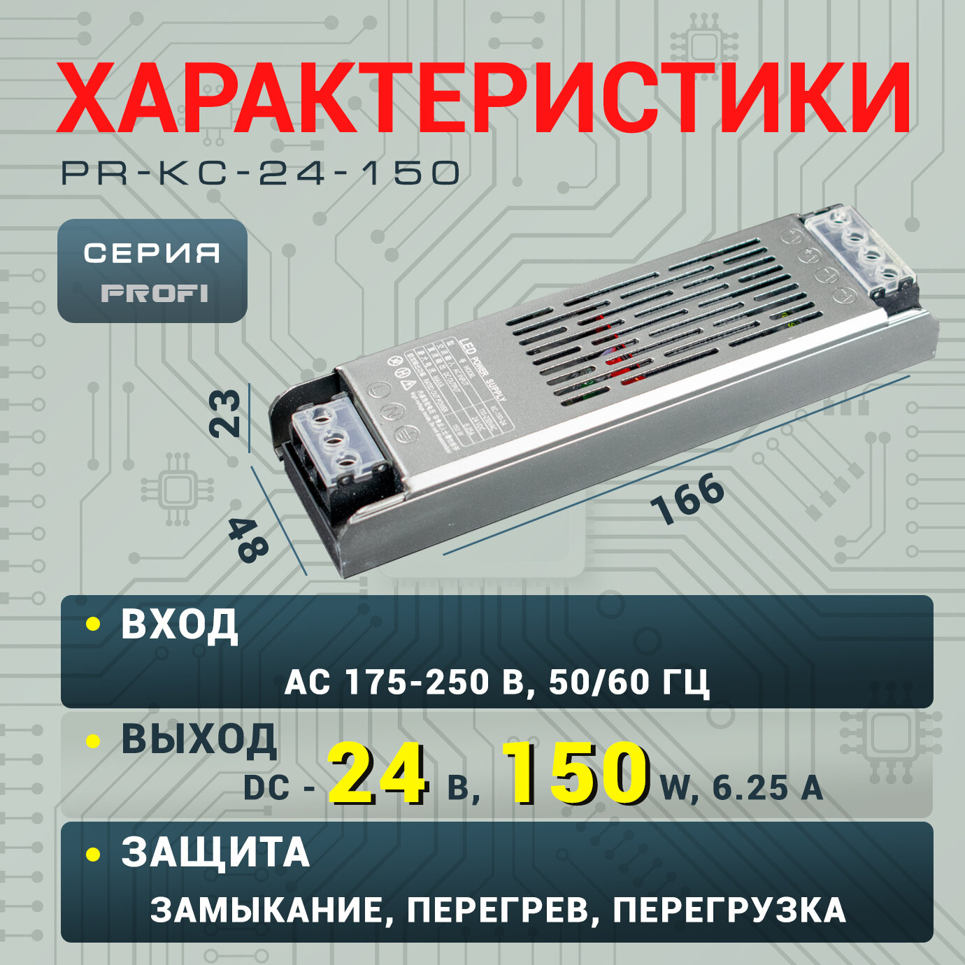 Блок питания Led-Book Profi 24V 150W универсальный металлический 1 054 ₽