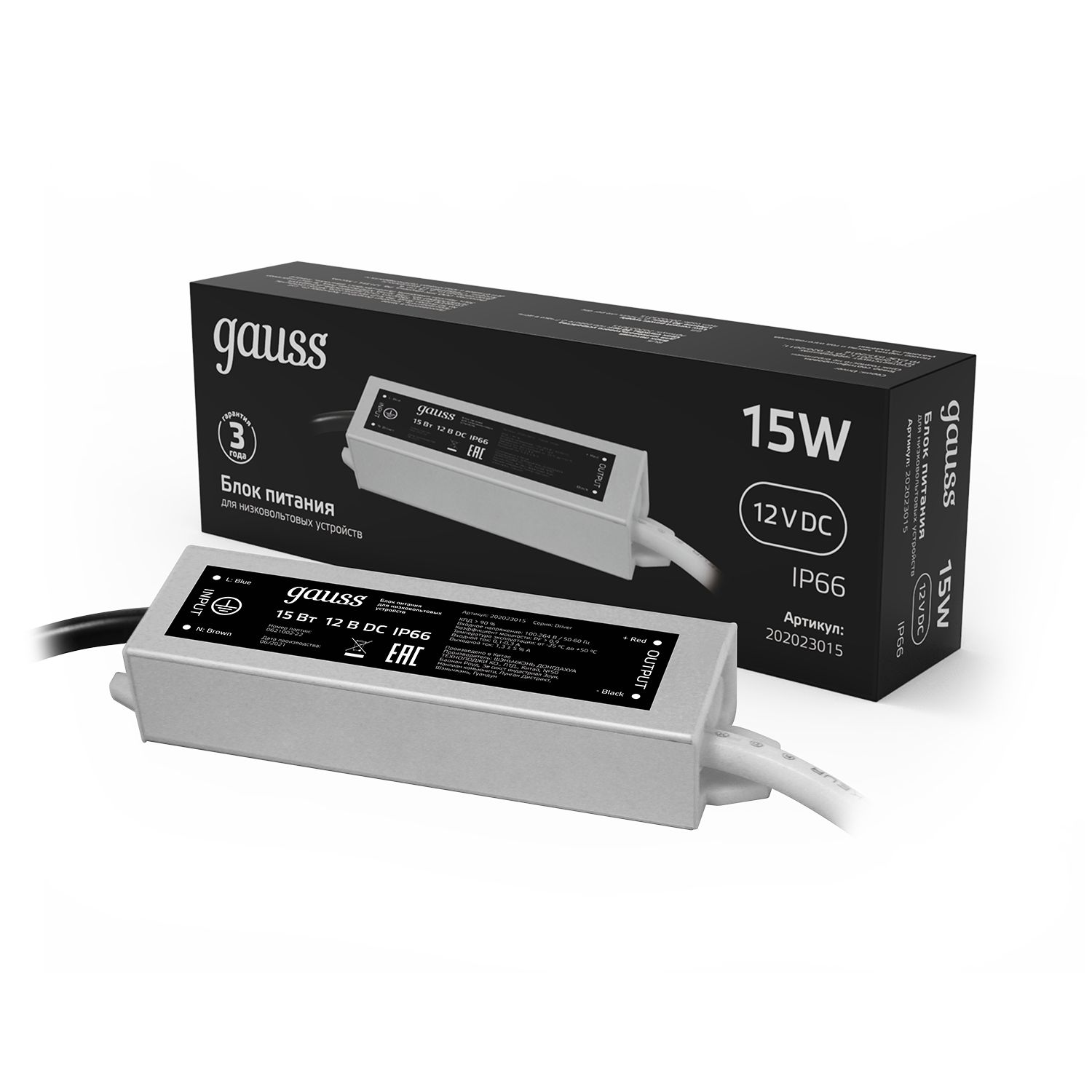 Блок питания для светодиодных лент 15W 12V IP66 Gauss информация: