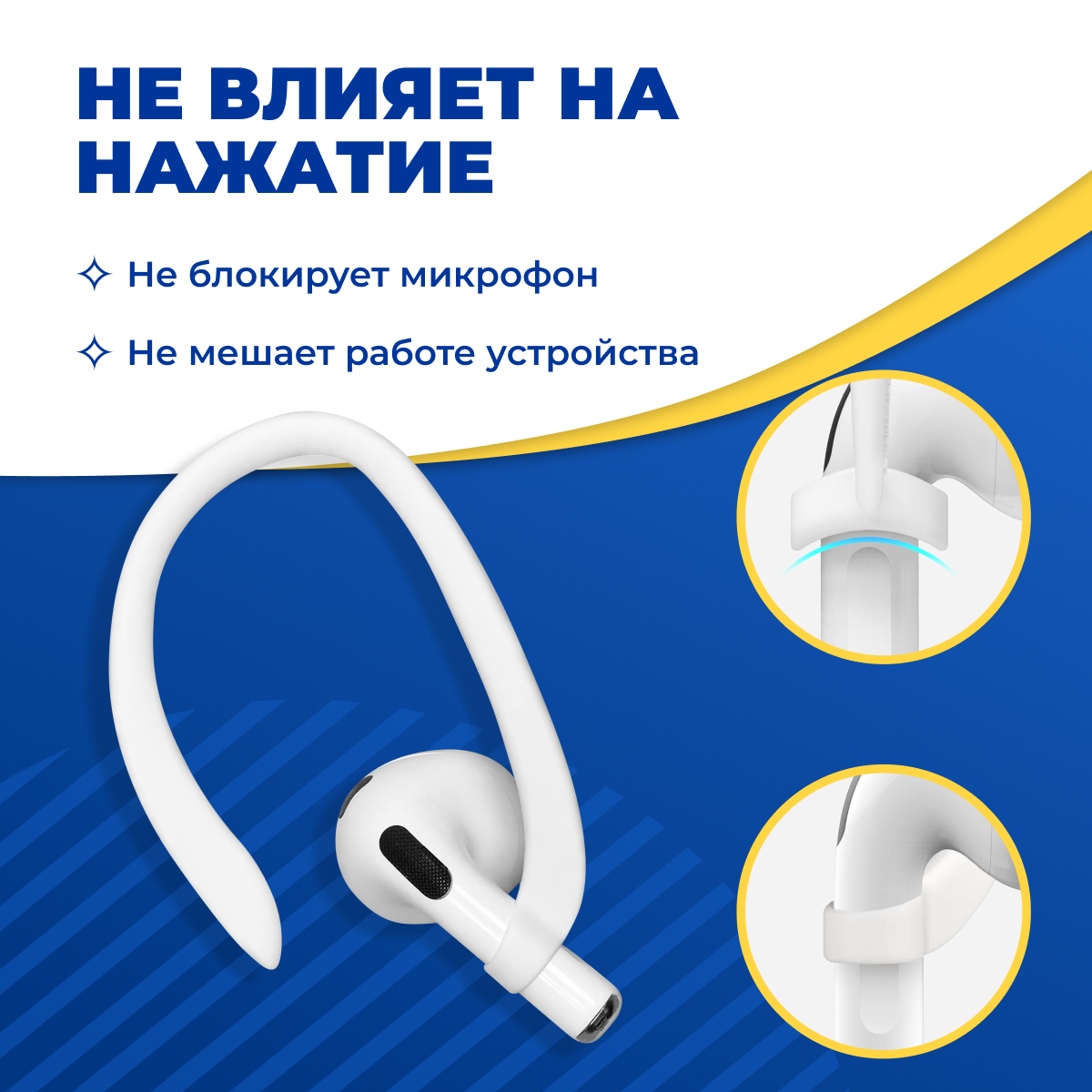 Отзывы на Силиконовый держатель для беспроводных наушников Apple AirPods 1 и 2 / Белый фиксатор с креплением на уши для наушников Эпл АирПодс / Защита от потери