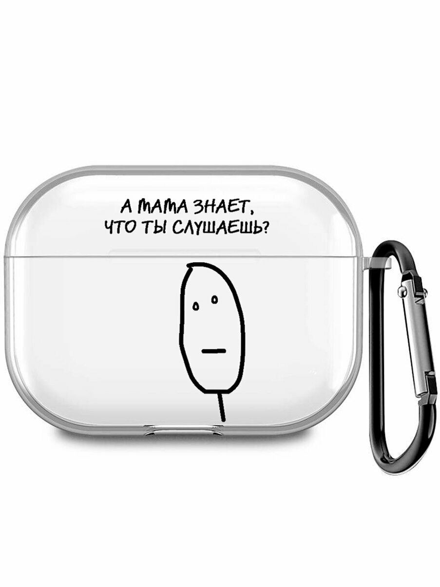 Чехол для Airpods Pro, Pro 2 с принтом "А мама знает, что ты слушаешь?" информация:
