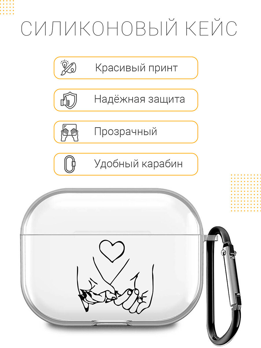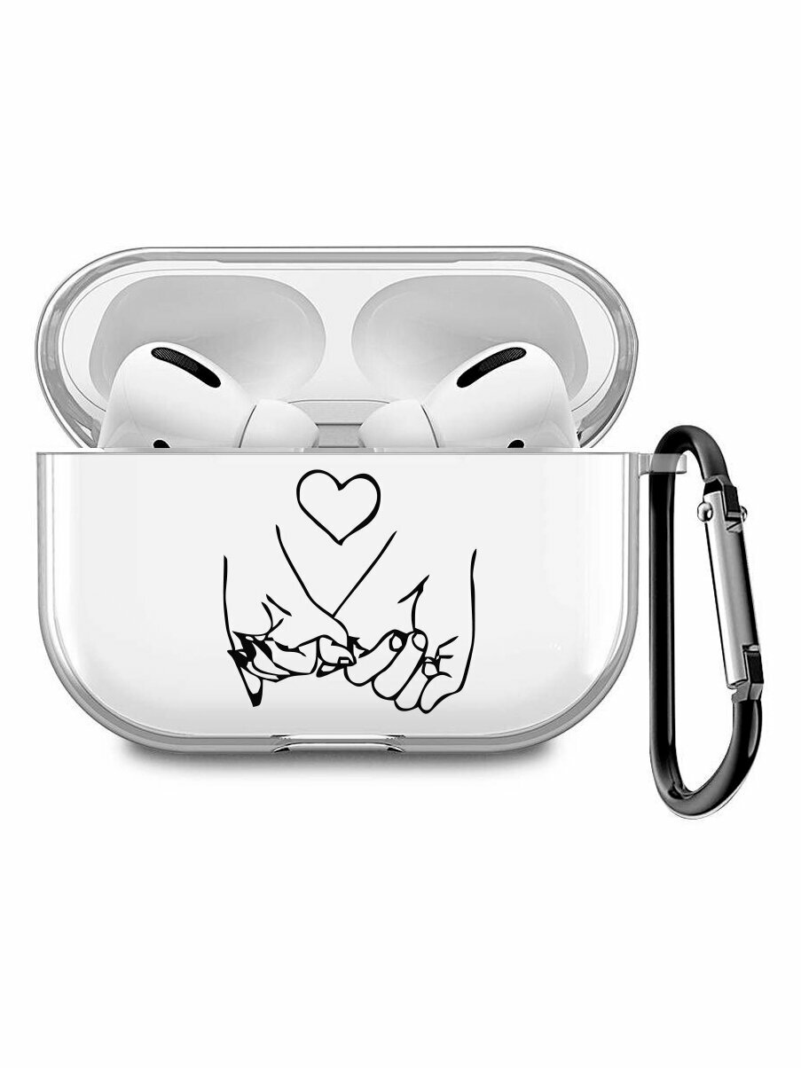 Прозрачный чехол для наушников Apple AirPods Pro / АирПодс Про силиконовый с 3D принтом "Lovers Hands" информация: