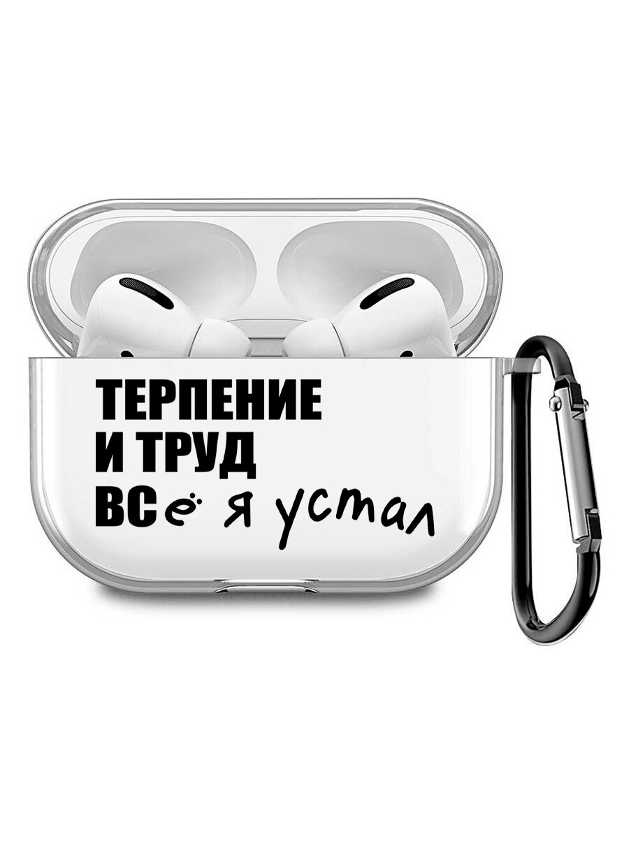 Отзывы на Прозрачный чехол для наушников Apple AirPods Pro / АирПодс Про силиконовый с 3D принтом "Fatigue"