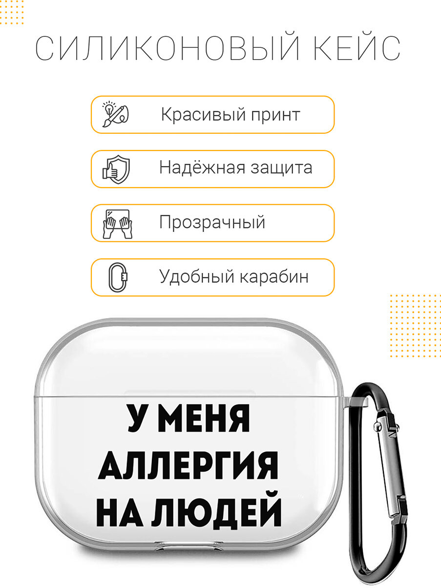 Отзывы на Прозрачный чехол для наушников Apple AirPods Pro / АирПодс Про силиконовый с 3D принтом "Allergy"