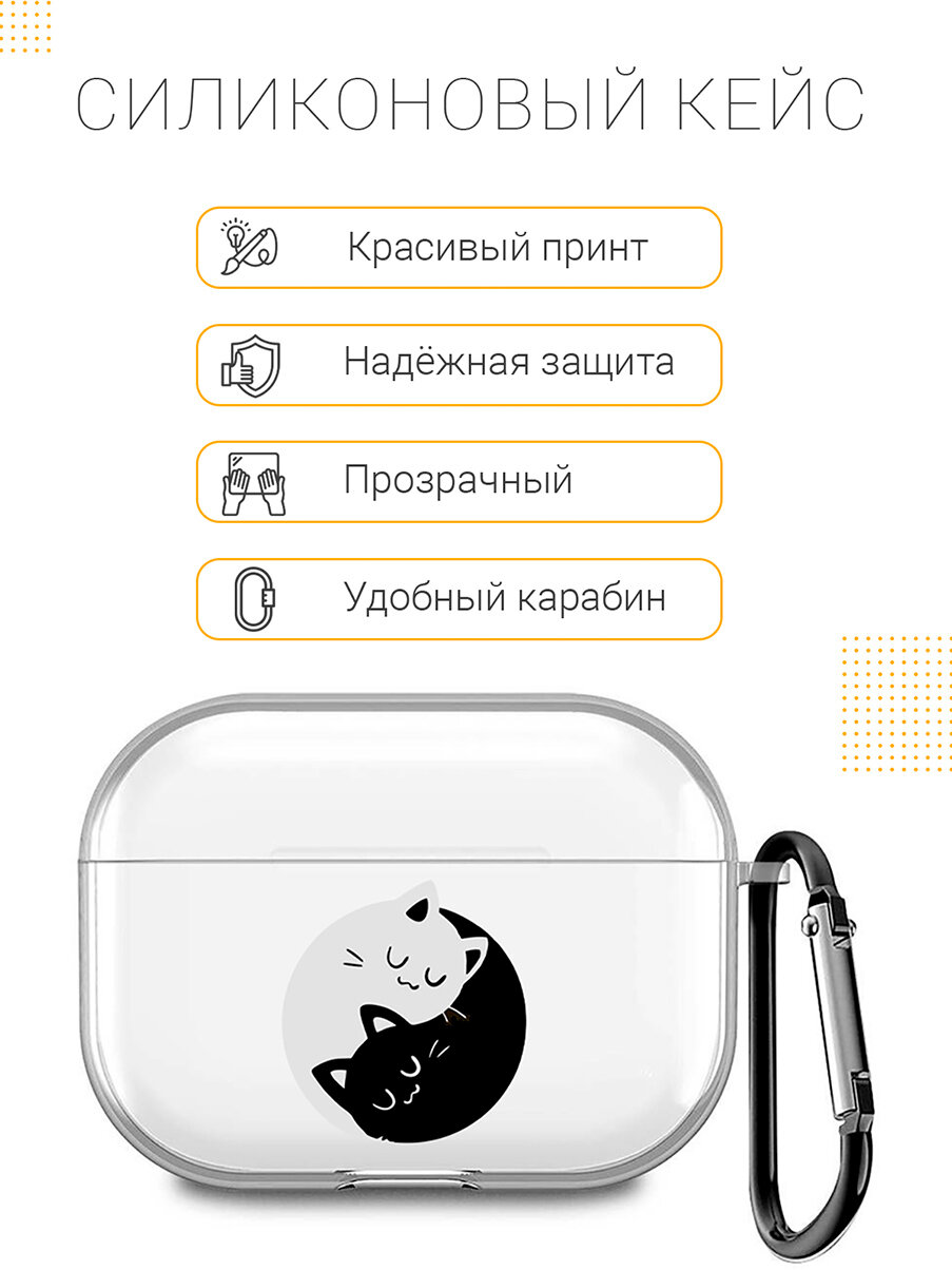 Отзывы на Прозрачный чехол для наушников Apple AirPods Pro / АирПодс Про силиконовый с 3D принтом "Yin and Yang Cats"