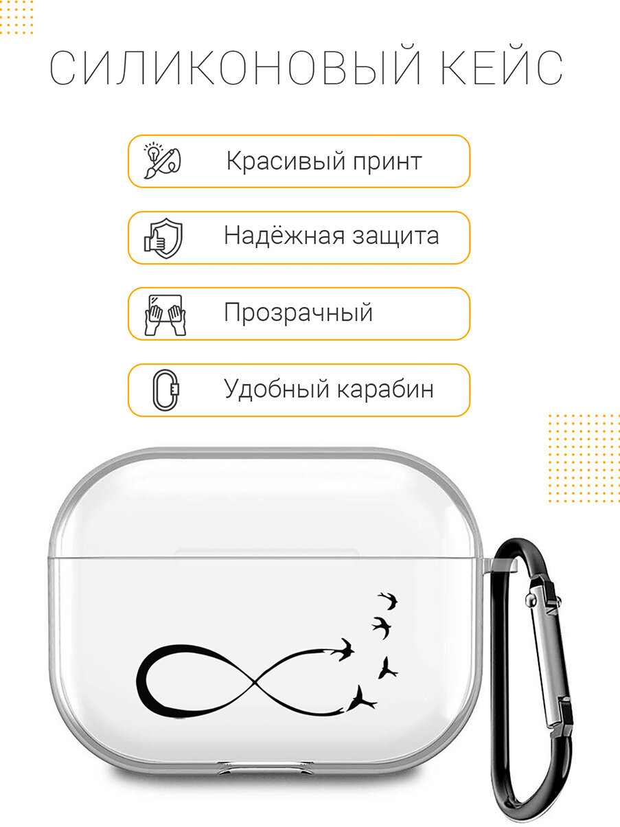 Прозрачный чехол для наушников Apple AirPods Pro / АирПодс Про силиконовый с 3D принтом "Infinity" информация: