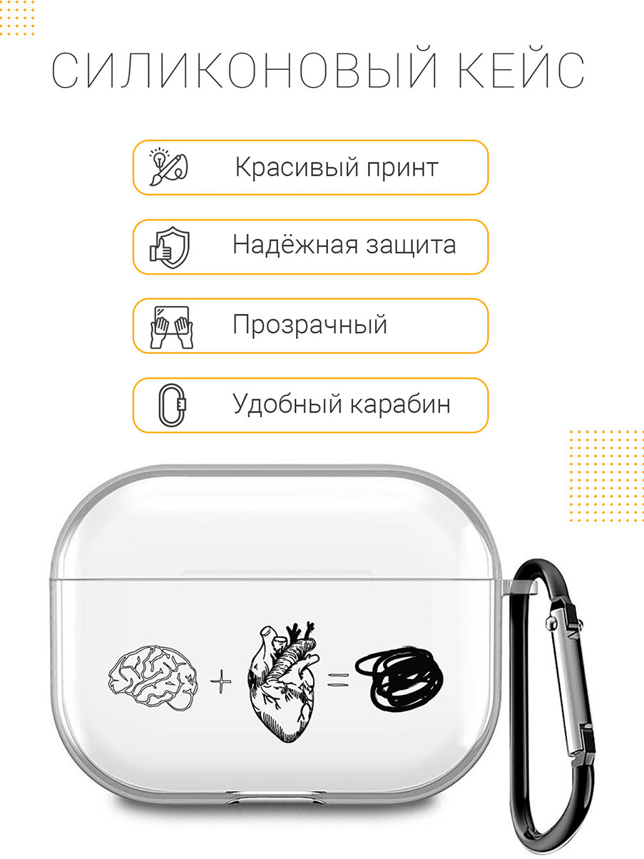 Отзывы на Прозрачный чехол для наушников Apple AirPods Pro / АирПодс Про силиконовый с 3D принтом "Brain Plus Heart"