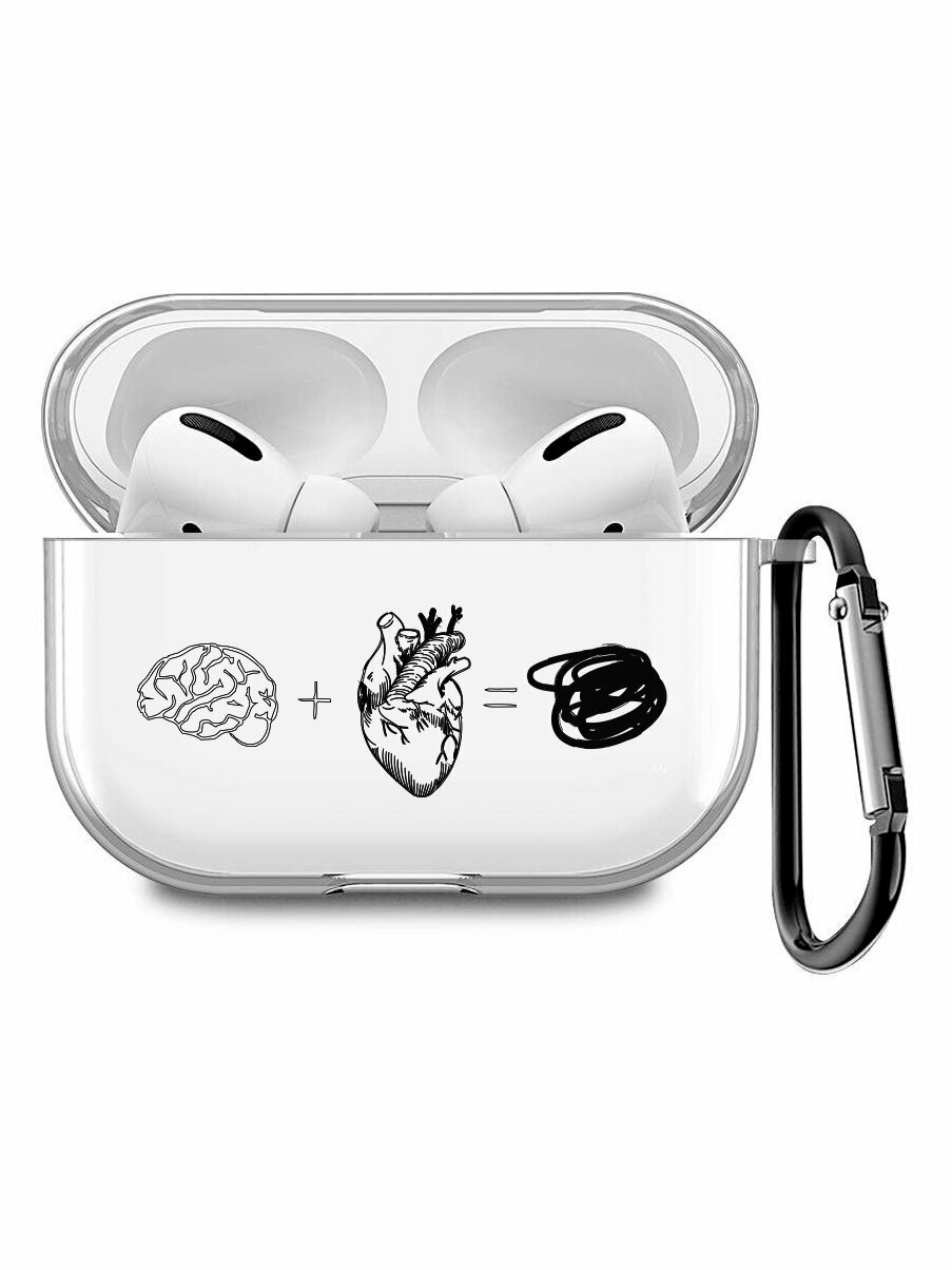 Прозрачный чехол для наушников Apple AirPods Pro / АирПодс Про силиконовый с 3D принтом "Brain Plus Heart" информация: