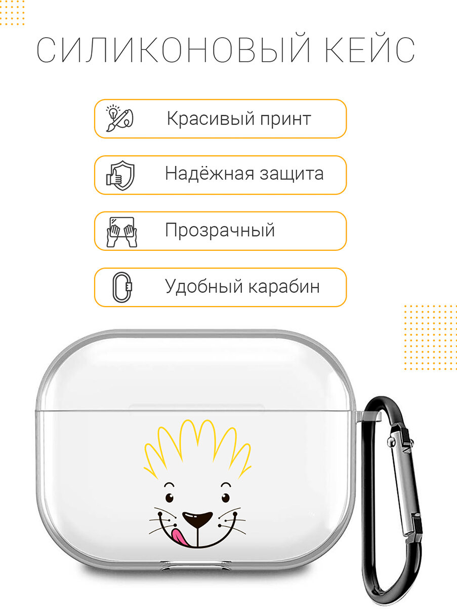 Отзывы на Прозрачный чехол для наушников Apple AirPods Pro / АирПодс Про силиконовый с 3D принтом "Minimalistic Lion"