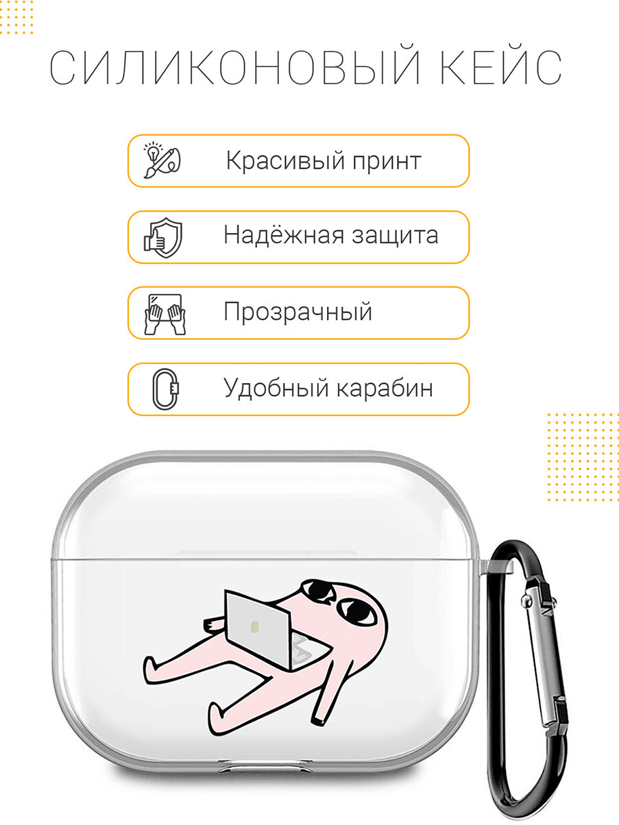 Прозрачный чехол для наушников Apple AirPods Pro / АирПодс Про силиконовый с 3D принтом "Freelance" информация: