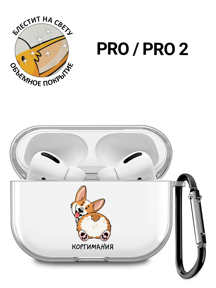 Прозрачный чехол для наушников Apple AirPods Pro / АирПодс Про силиконовый с 3D принтом "CorgiMania" информация: