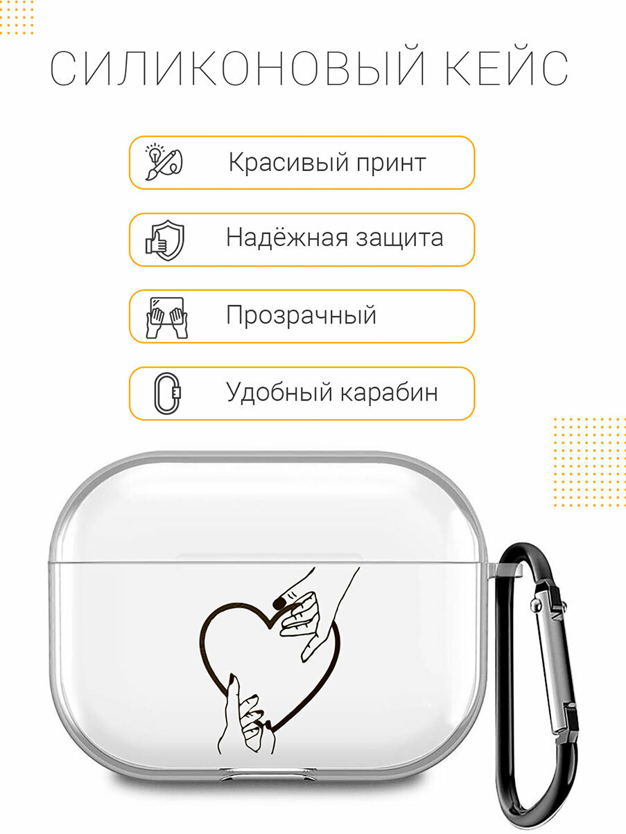 Прозрачный чехол для наушников Apple AirPods Pro / АирПодс Про силиконовый с 3D принтом "Lovers Hands" 512 ₽