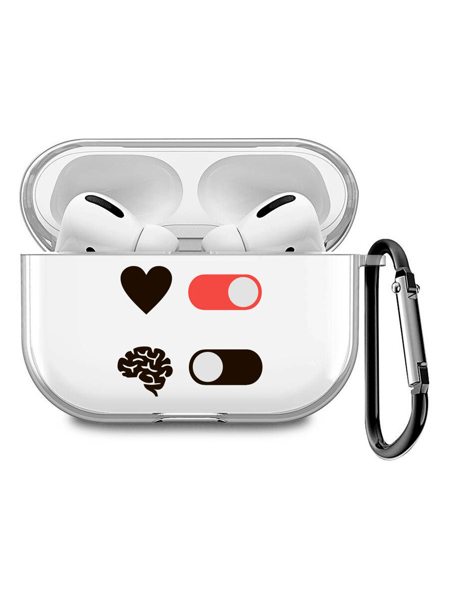 Прозрачный чехол для наушников Apple AirPods Pro / АирПодс Про силиконовый с 3D принтом "Brain Plus Heart" 512 ₽