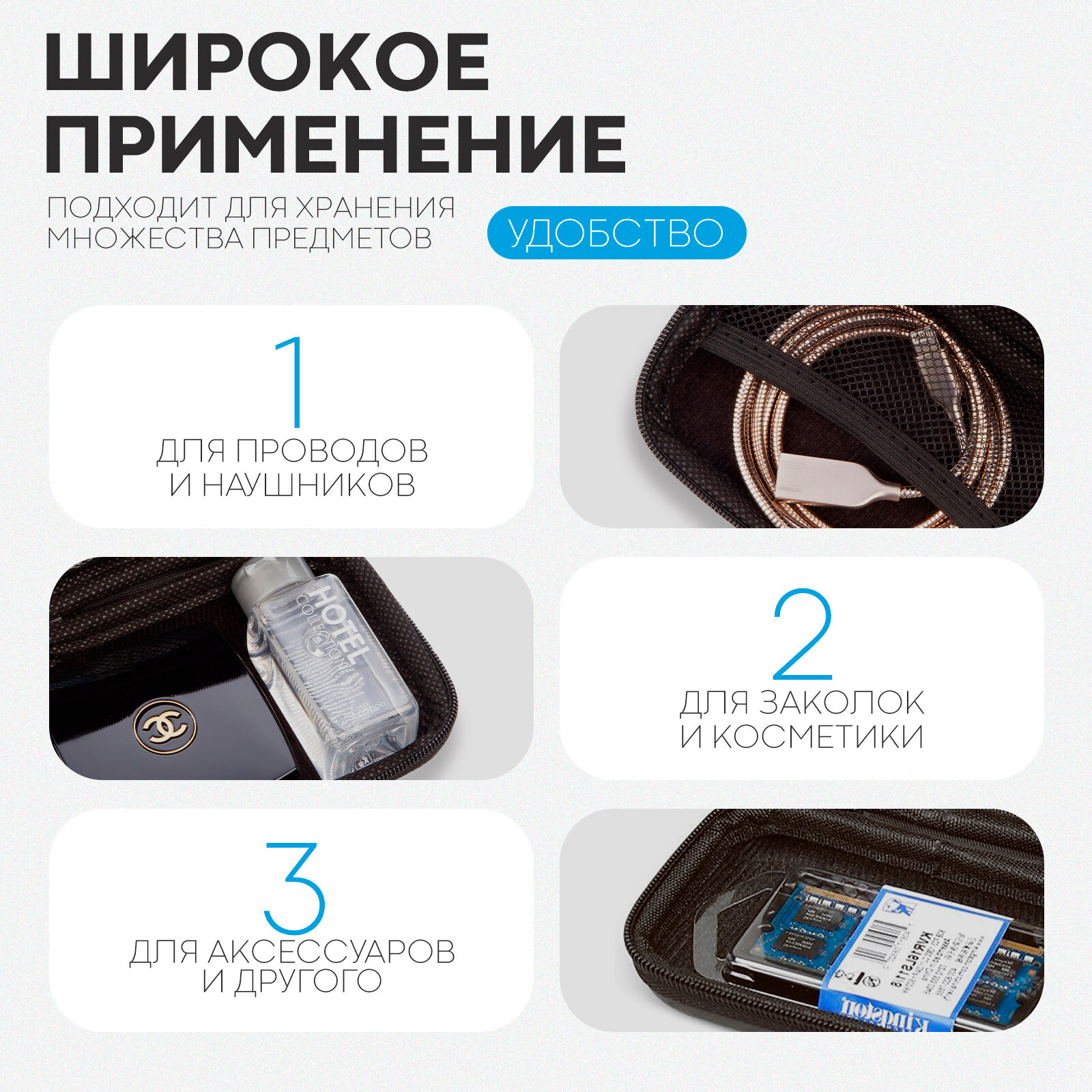 Жесткий кейс органайзер - сумка-чехол картофан на молнии для наушников, черный 510 ₽