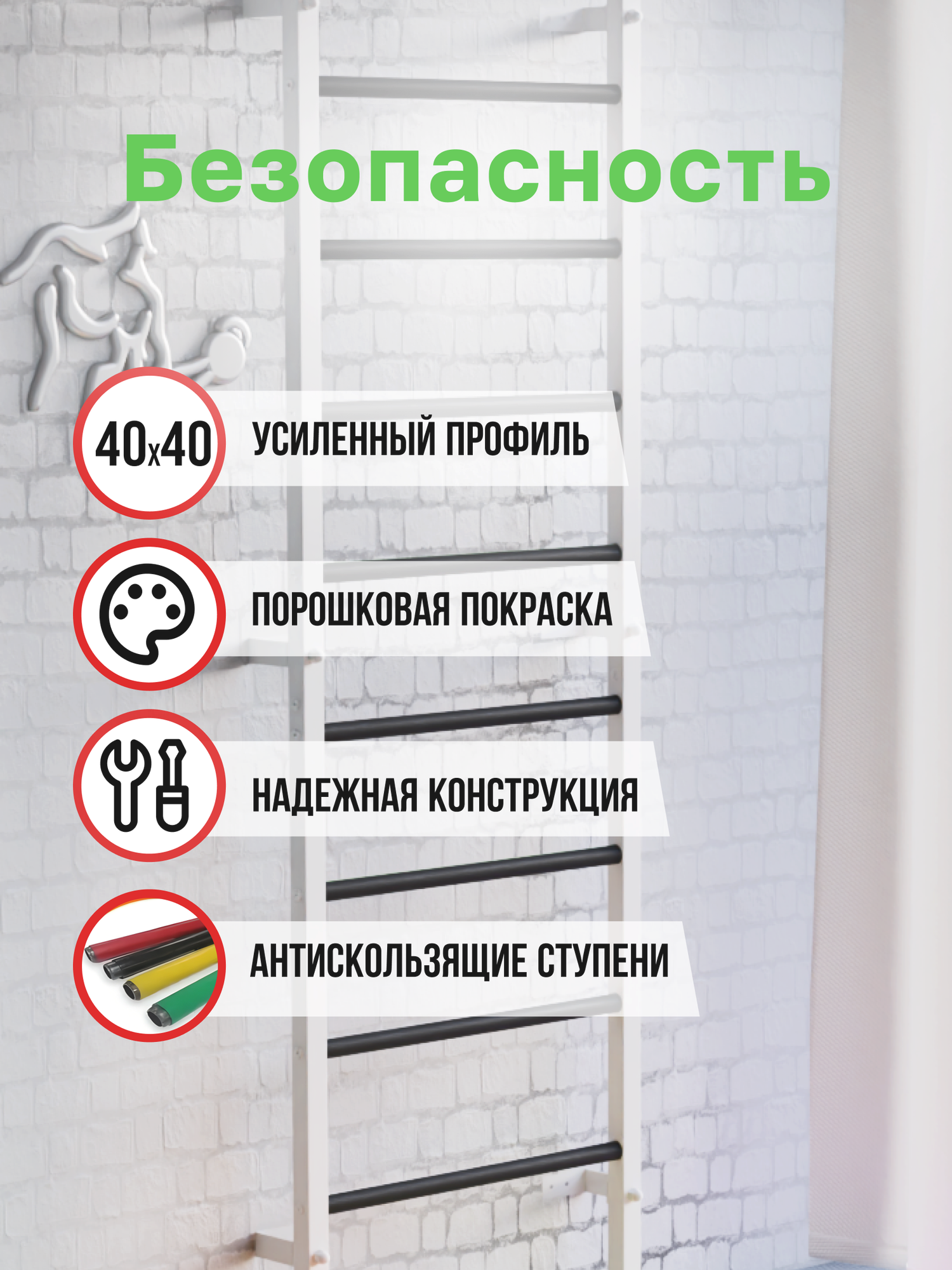Металлическая шведская стенка (ступени черные из ПВХ) информация: