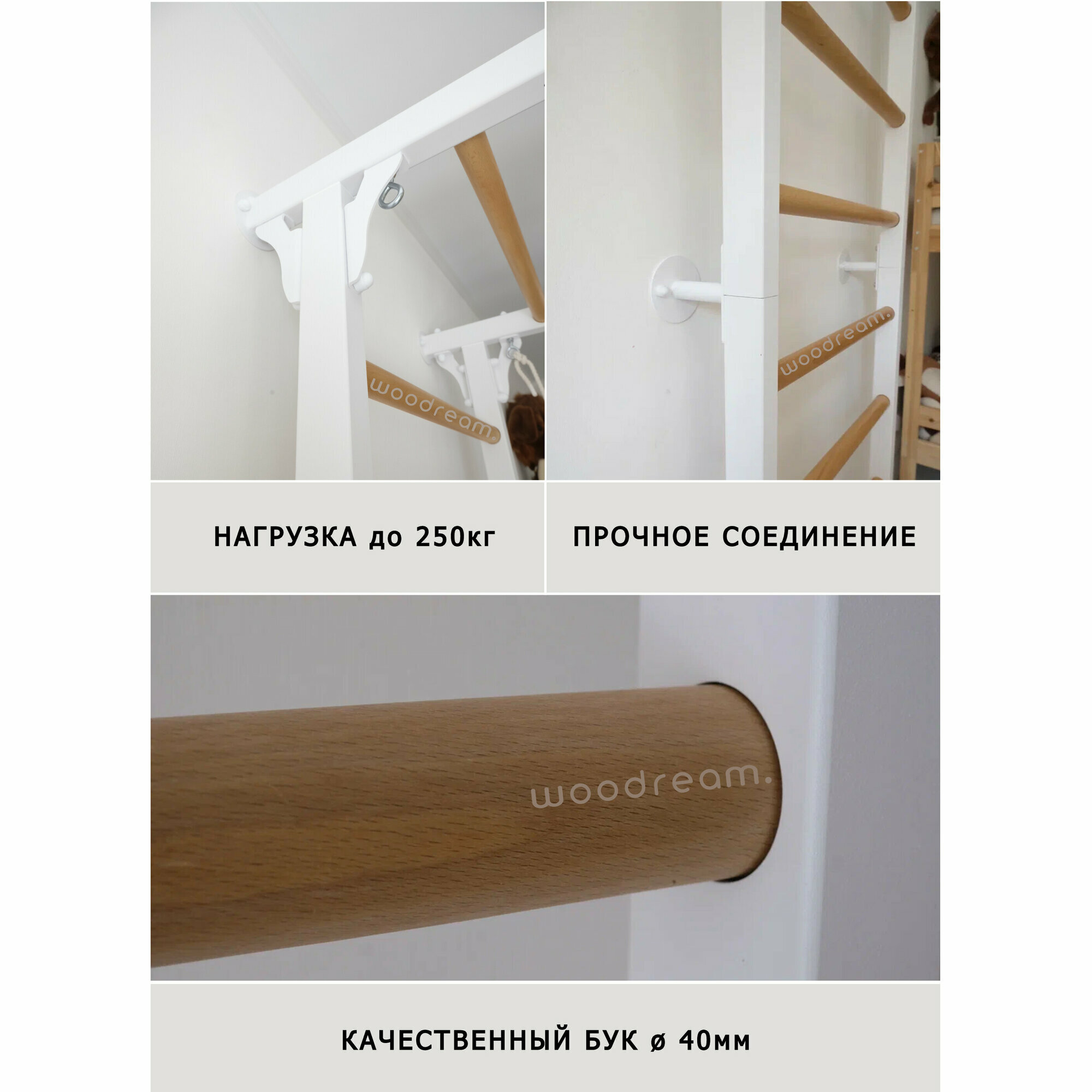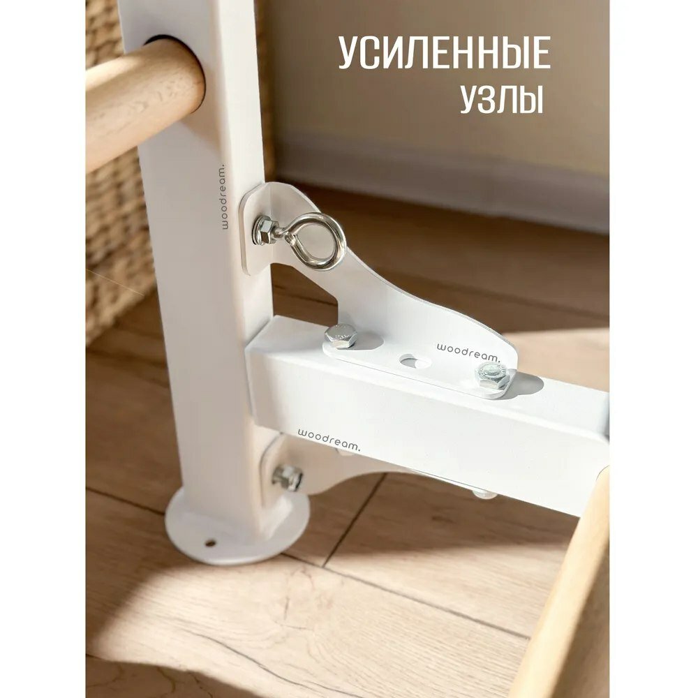 Шведская стенка для детей деревянная Woodream Baby Асланд детский спортивный белый комплекс турник настенный с канатом и кольцами 230 см