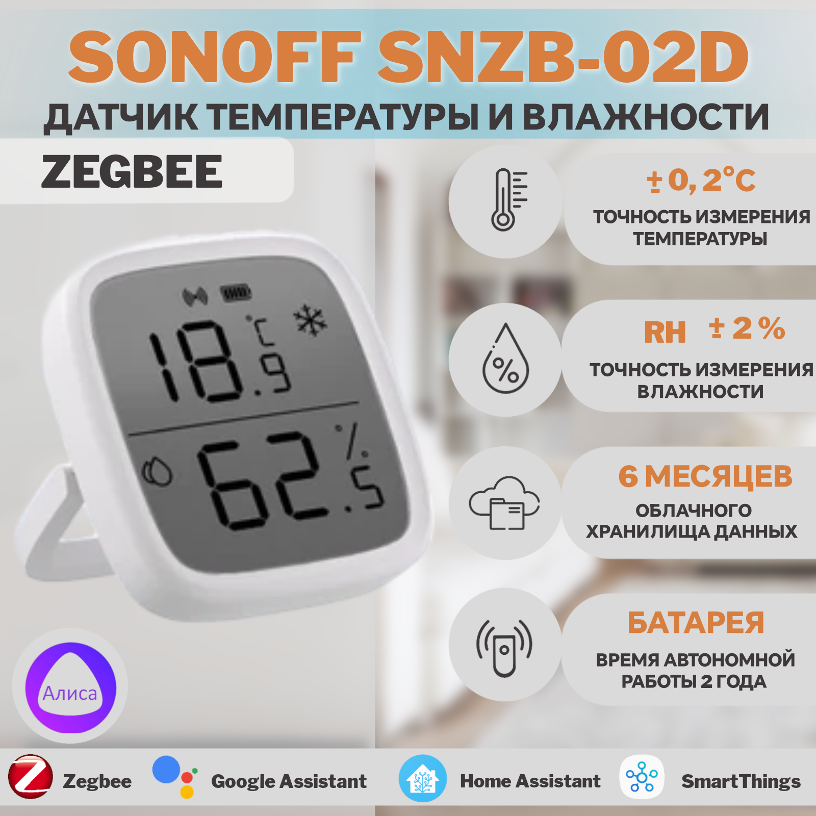 Датчик температуры и влажности SONOFF SNZB-02D - ZigBee (c дисплеем) информация: